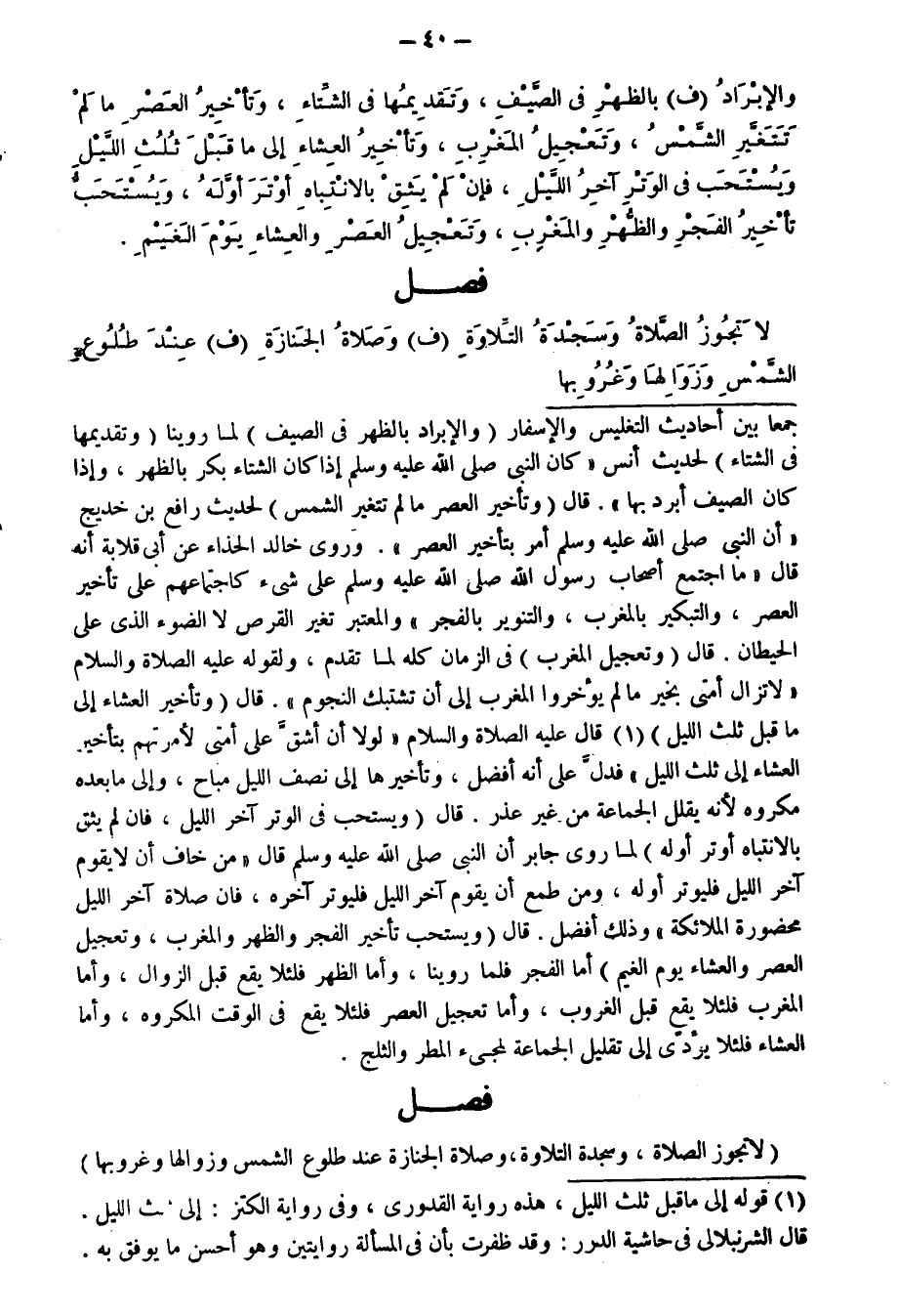فَصْلٌ لَا تَجُوزُ الصَّلَاةُ وَسَجْدَةُ التِّلَاوَةِ (ف) وَصَلَاةُ الْجِنَازَةِ (ف) عِنْدَ طُلُوعِ الشَّمْسِ وَزَوَالِهَا وَغُرُوبِهَا