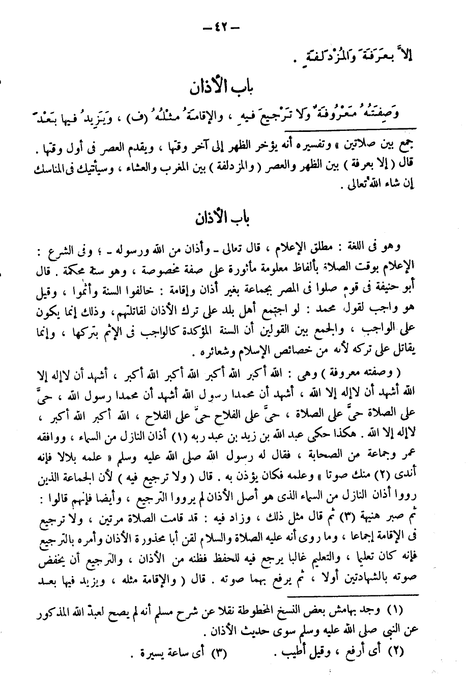 بَابُ الْأَذَانِ وَصِفَتُهُ مَعْرُوفَةٌ وَلَا تَرْجِيعَ فِيهِ، وَالْإِقَامَةُ مِثْلُهُ (ف) ، وَيَزِيدُ فِيهَا بَعْدَ