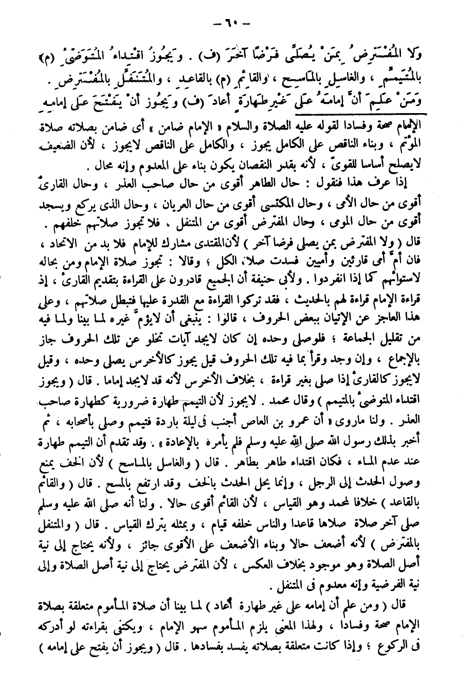 إِذَا عُرِفَ هَذَا فَنَقُولُ: حَالُ الطَّاهِرِ أَقْوَى مِنْ حَالِ صَاحِبِ الْعُذْرِ، وَحَالُ الْقَارِئِ أَقْوَى مِنْ حَالِ الْأُمِّيِّ، وَحَالُ الْمُكْتَسِي أَقْوَى مِنْ حَالِ الْعُرْيَانِ، وَحَالُ الَّذِي يَرْكَعُ وَيَسْجُدُ أَقْوَى مِنْ حَالِ الْمُومِي، وَحَالُ الْمُفْتَرِضِ أَقْوَى مِنَ الْمُتَنَفِّلِ، فَلَا تَجُوزُ صَلَاتُهُمْ خَلْفَهُمْ.