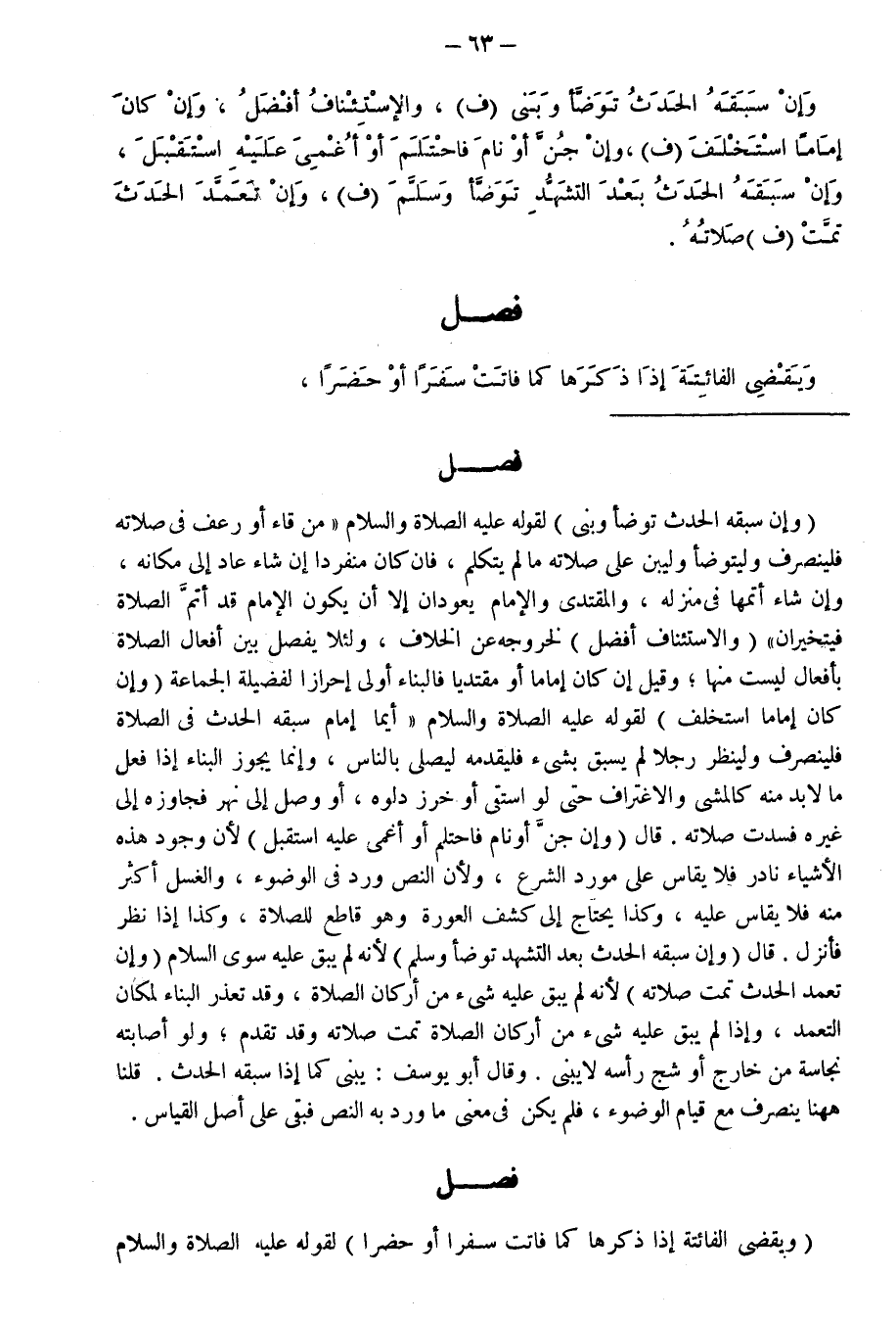وَإِنْ سَبَقَهُ الْحَدَثُ تَوَضَّأَ وَبَنَى (ف) ، وَالِاسْتِئْنَافُ أَفْضَلُ، وَإِنْ كَانَ إِمَامًا اسْتَخْلَفَ (ف) ، وَإِنْ جُنَّ أَوْ نَامَ فَاحْتَلَمَ أَوْ أُغْمِيَ عَلَيْهِ اسْتَقْبَلَ، وَإِنْ سَبَقَهُ الْحَدَثُ بَعْدَ التَّشَهُّدِ تَوَضَّأَ وَسَلَّمَ (ف) ، وَإِنْ تَعَمَّدَ الْحَدَثَ تَمَّتْ (ف) صَلَاتُهُ.