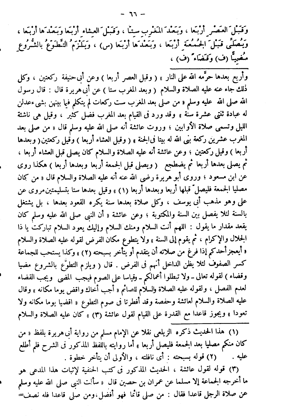 (وَقَبْلَ الْعَصْرِ أَرْبَعًا) وَعَنْ أَبِي حَنِيفَةَ رَكْعَتَيْنِ، وَكُلُّ ذَلِكَ جَاءَ عَنْهُ - عَلَيْهِ الصَّلَاةُ وَالسَّلَامُ -.
