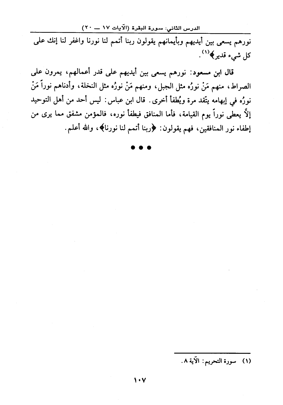 نُورُهُمْ يَسْعَى بَيْنَ أَيْدِيهِمْ وَبِأَيْمَانِهِمْ يَقُولُونَ رَبَّنَا أَتْمِمْ لَنَا نُورَنَا وَاغْفِرْ لَنَا إِنَّكَ عَلَى كُلِّ شَيْءٍ قَدِيرٌ} .