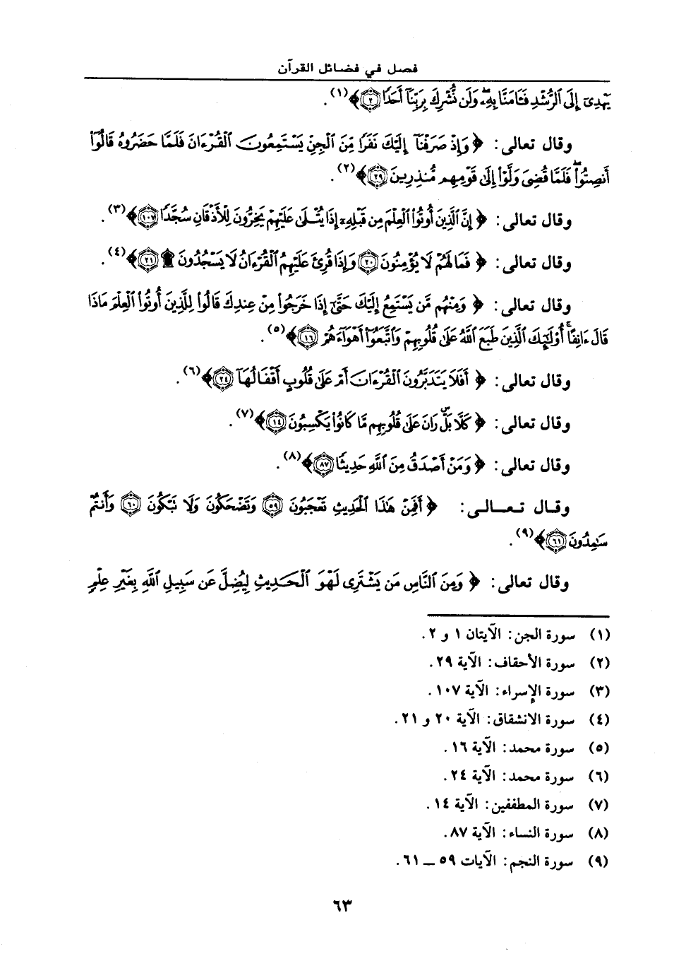 وقال تعالى: {وَإِذْ صَرَفْنَا إِلَيْكَ نَفَراً مِّنَ الْجِنِّ يَسْتَمِعُونَ الْقُرْآنَ فَلَمَّا حَضَرُوهُ قَالُوا أَنصِتُوا فَلَمَّا قُضِيَ وَلَّوْا إِلَى قَوْمِهِم مُّنذِرِينَ} .