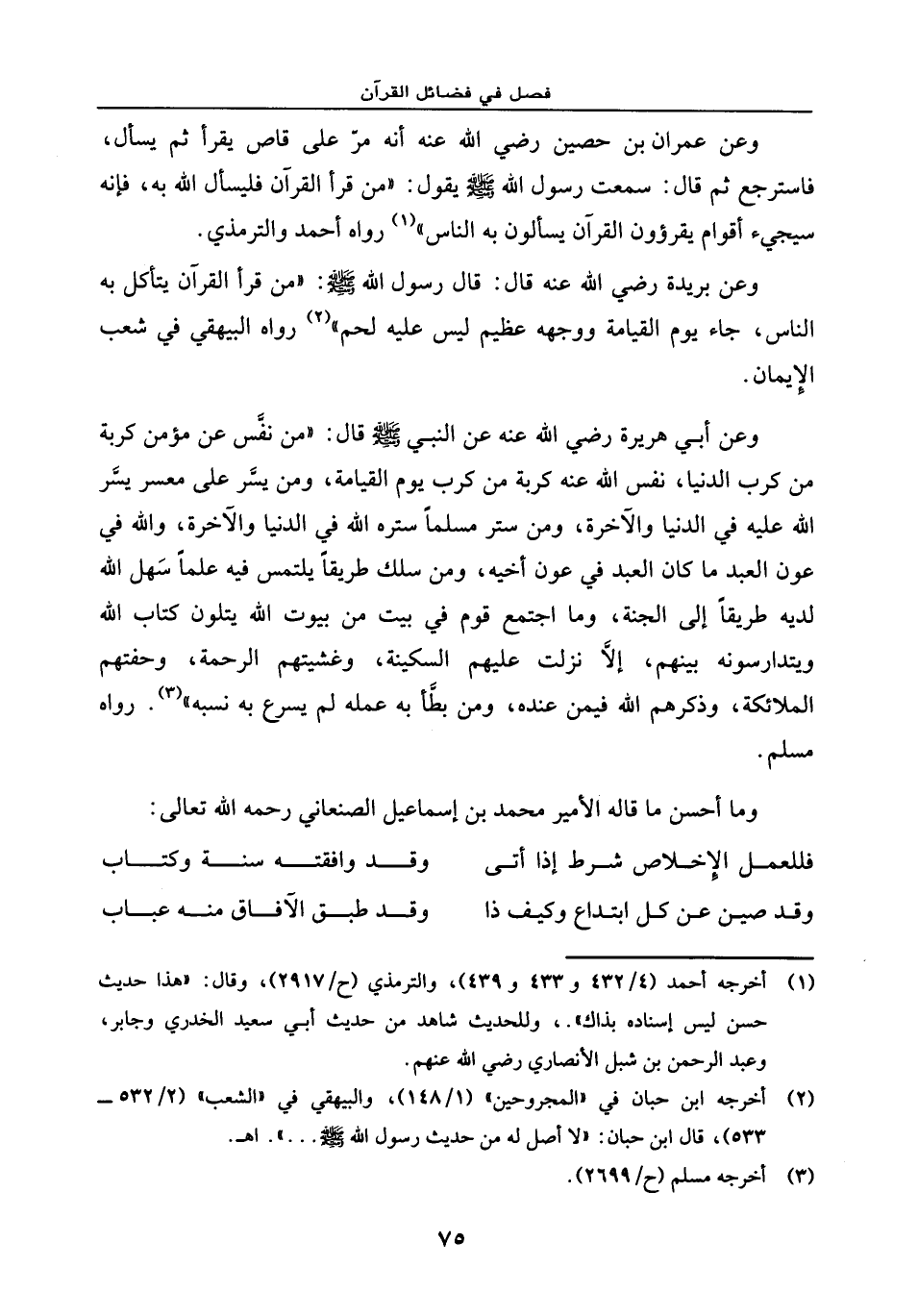 وما أحسن ما قاله الأمير محمد بن إسماعيل الصنعاني رحمه الله تعالى: