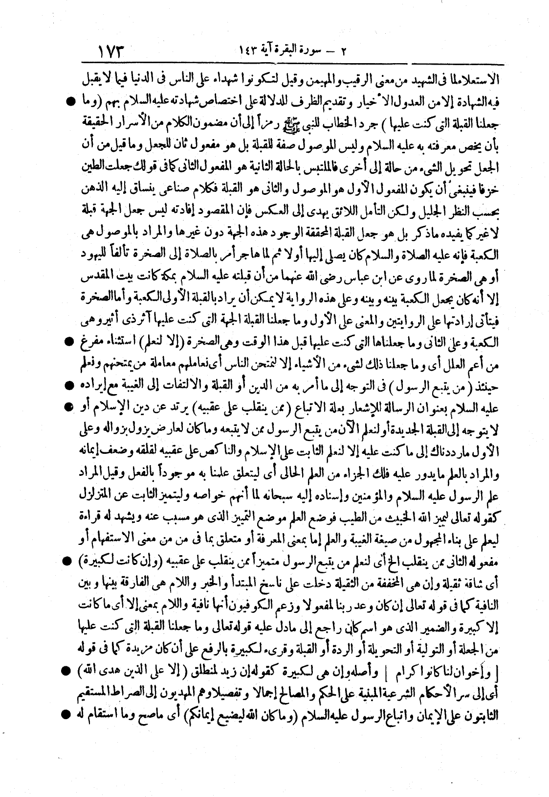 {وَمَا جَعَلْنَا القبلة التى كُنتَ عَلَيْهَا} جرد الخطاب للنبي صلى الله عليه وسلم رمزاً إلى أن مضمونَ الكلام من الأسرار الحقيقةِ بأن يخص معرفته به عليه السلام وليس الموصولُ صفةً للقِبلة بل هو مفعولٌ ثانٍ للجعل وما قيل من أن الجعلَ تحويل الشئ من حالة إلى أخرى فالملتبسُ بالحالة الثانية هو المفعول الثاني كما في قولك جعلتُ الطينَ خَزَفاً فينبغي أن يكون المفعولُ الأول هو الموصولَ والثاني هو القبلة فكلام صناعي ينساق إليه الذهن بحسب النظرِ الجليلِ ولكنَّ التأملَ اللائقَ يهدي إلى العكس فإن المقصودَ إفادتُه ليس جعلَ الجهة قبلةً لا غيرُ كما يفيده ما ذُكر بل هو جعلُ القبلةِ المحققةِ الوجود هذه الجهةَ دون غيرِها والمرادُ بالموصولِ هي الكعبةُ فإنه عليه الصَّلاة والسَّلام كان يصلي إليها أولاً ثم لما هاجرَ أُمِر بالصلاة إلى الصخرة تألّفاً لليهود أو هي الصخرةُ لِما روي عن ابن عباس رضيَ الله عنُهمَا مَنْ أن قِبلته عليه السلام بمكة كانت بيتَ المقدس إلا أنه كان يجعلُ الكعبةَ بينه وبينه وعلى هذه الرواية لا يمكن أن يرادَ بالقبلة الأولى الكعبةُ وأما الصخرةُ فيتأتى إرادتُها على الروايتين والمعنى على الأول وما جعلنا القِبلة الجهةَ التي كنت عليها آثر ذي أثير وهي الكعبة وعلى الثاني وما جعلناها التي كنت عليها قبل هذا الوقت وهي الصخرة