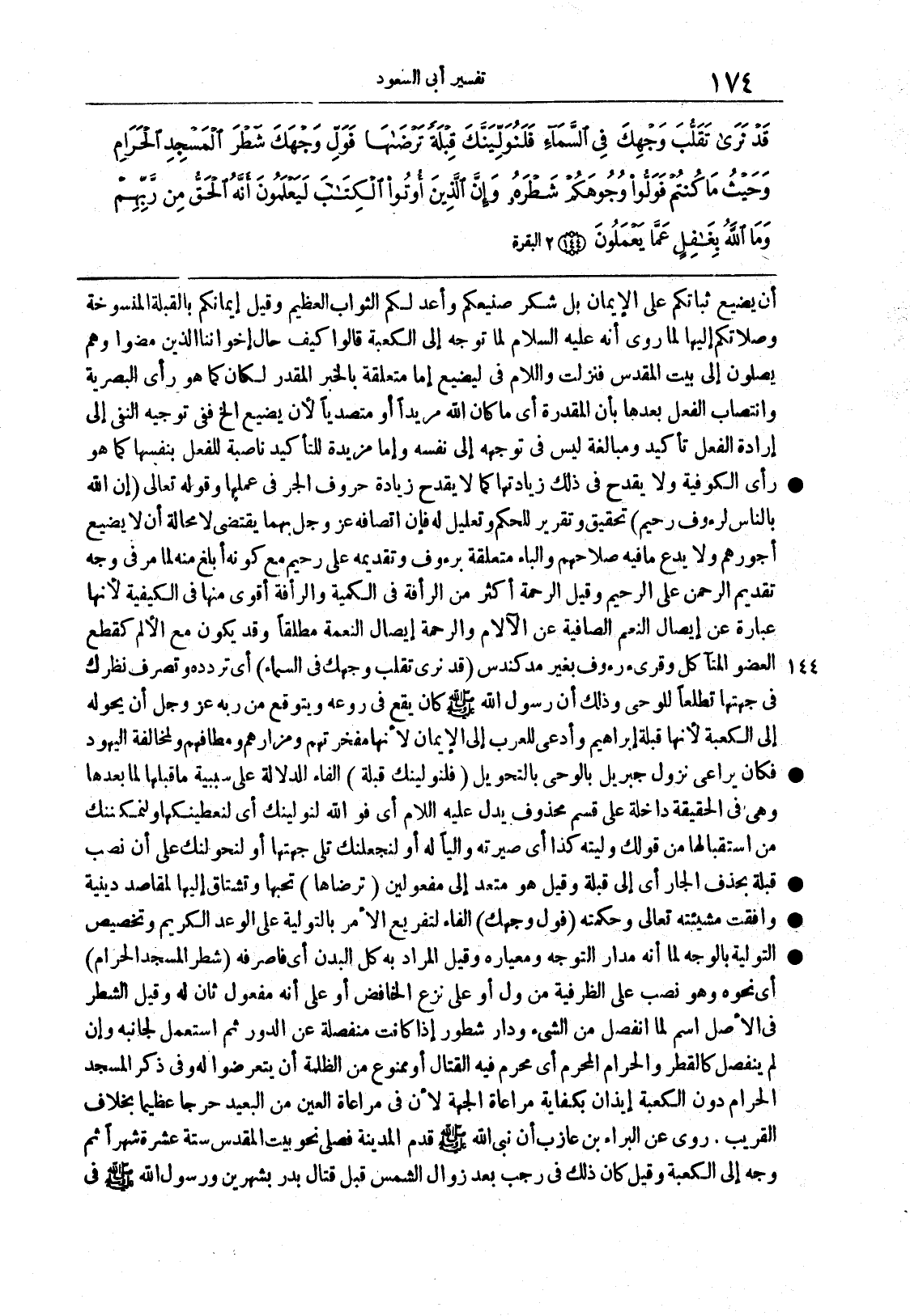 {شَطْرَ المسجد الحرام} أي نحوَه وهو نصبٌ على الظرفية من ول أو على نزع الخافض أو على مفعول ثانٍ له وقيل الشطرُ في الأصل اسمٌ لما انفصل من الشئ ودارٌ شَطورٌ إذا كانت منفصلةً عن الدور ثم استعمل لجانبه وإن لم ينفصِلْ كالقُطر والحرامُ المُحرَّم أي محرم فيه القتالُ أو ممنوعٌ من الظَلَمة أن يتعرضوا له وفي ذكر المسجد الحرامِ دون الكعبة إيذانٌ بكفاية مراعاةِ الجهةِ لأن في مراعاةِ العينِ من البعيد حرجاً عظيماً بخلاف القريب رُوي عن البراء بن عازبٍ أن نبي الله صلى الله عليه وسلم قدِم المدينةَ فصلَّى نحوَ بيت المقدس ستة عشرة شهراً ثم وُجِّه إلى الكعبة وقيل كان ذلك في رجبٍ بعد زوال الشمس قبيل قتال بدر بشهرين ورسوله الله صلى الله عليه وسلم في