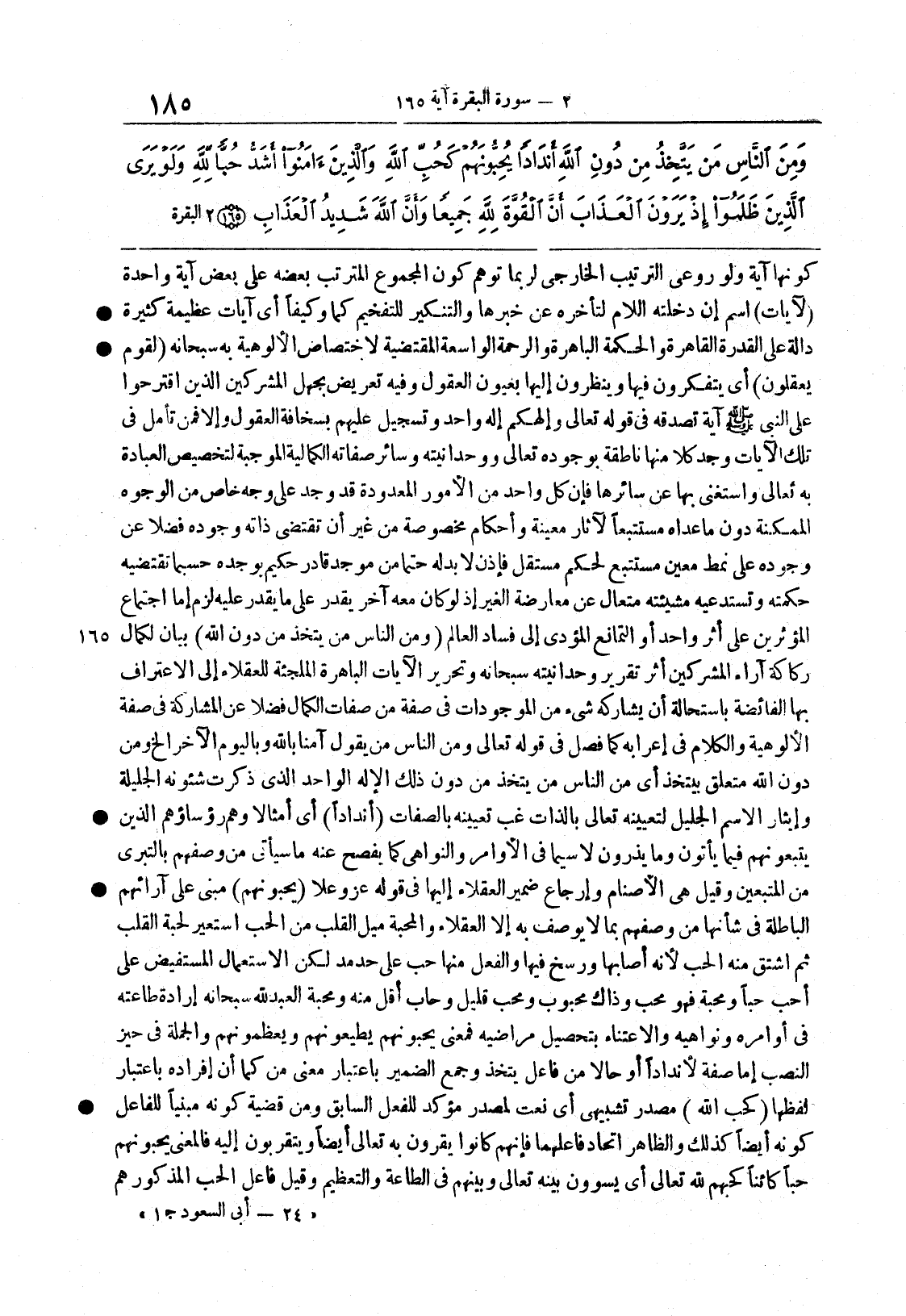 {أَندَاداً} أي أمثالاً وهم رؤساؤُهم الذين يتبعونهم فيما يأتُون وما يَذَرُون لاسيما في الأوامر والنواهي كما يفصح عنه ماسيأتى من وصفهم بالتبرِّي من المتّبعين وقيل هي الأصنام وإرجاعُ ضميرِ العقلاءِ إليها في قوله عز وعلا