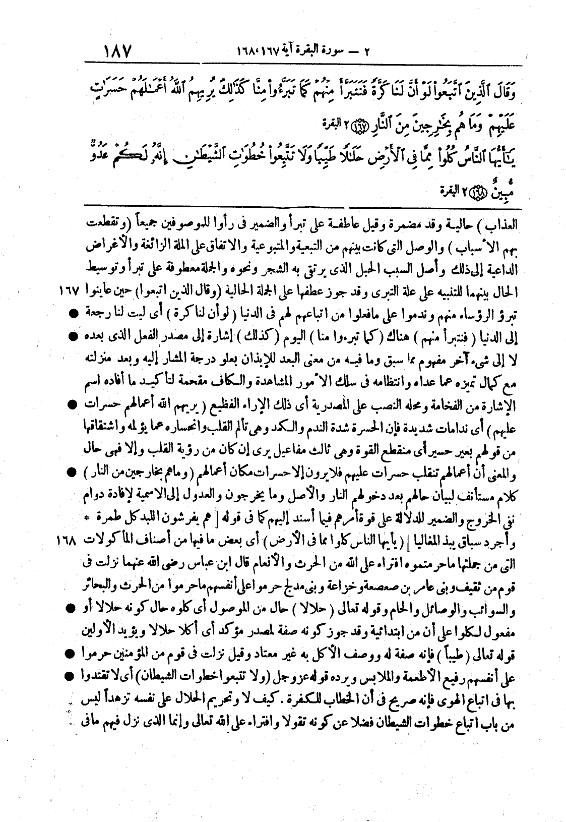 {يا أيها الناس كُلُواْ مِمَّا فِى الارض} أي بعضِ ما فيها من أصناف المأكولات التي من جملتها ما حرّمتموه افتراءً على الله من الحرْثِ والأنعام قال ابن عباس رضي الله عنهما نزلت في قوم من ثقيفٍ وبني عامرِ بنِ صَعْصَعةَ وخُزاعةَ وبني مدلج حرَّموا على أنفسهم ما حرموه من الحرْث والبحائرِ والسوائبِ والوصائل والحامِ وقولُه تعالى