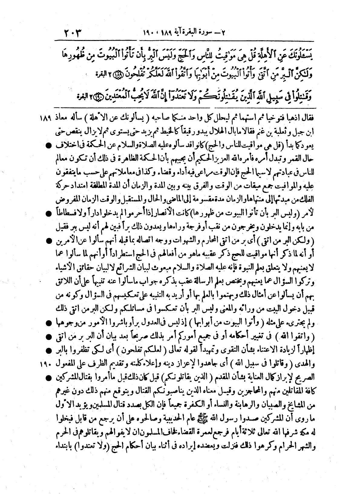 {الذين يقاتلونكم} قيل كان ذلك قبل ما أُمِروا بقتال المشركين كافةَ المقاتلين منهم والمحاجزين وقيل معناه الذين يناصبونكم القتالَ ويُتوقعُ منهم ذلك دون غيرهم من المشايخ والصبيان والرهابنة والنساء أو الكفَرَةُ جميعاً فإن الكلَّ بصدد قتالِ المسلمين ويؤيد الأولَ ما رُوي أن المشركين صدُّوا رسول الله صلى الله عليه وسلم عامَ الحُديبية وصالحوه على أن يرجِع من قابل فيُخَلّوا له مكةَ شرَّفها الله تعَالَى ثلاثةَ أيامٍ فرجَع لعمُرة القضاء فخاف المسلمون أن لا يفوا لهم ويقاتلوهم في الحَرم والشهرِ الحرام وكرِهوا ذلك فنزلت ويعضُده إيرادُه في أثناء بيان أحكامِ الحج