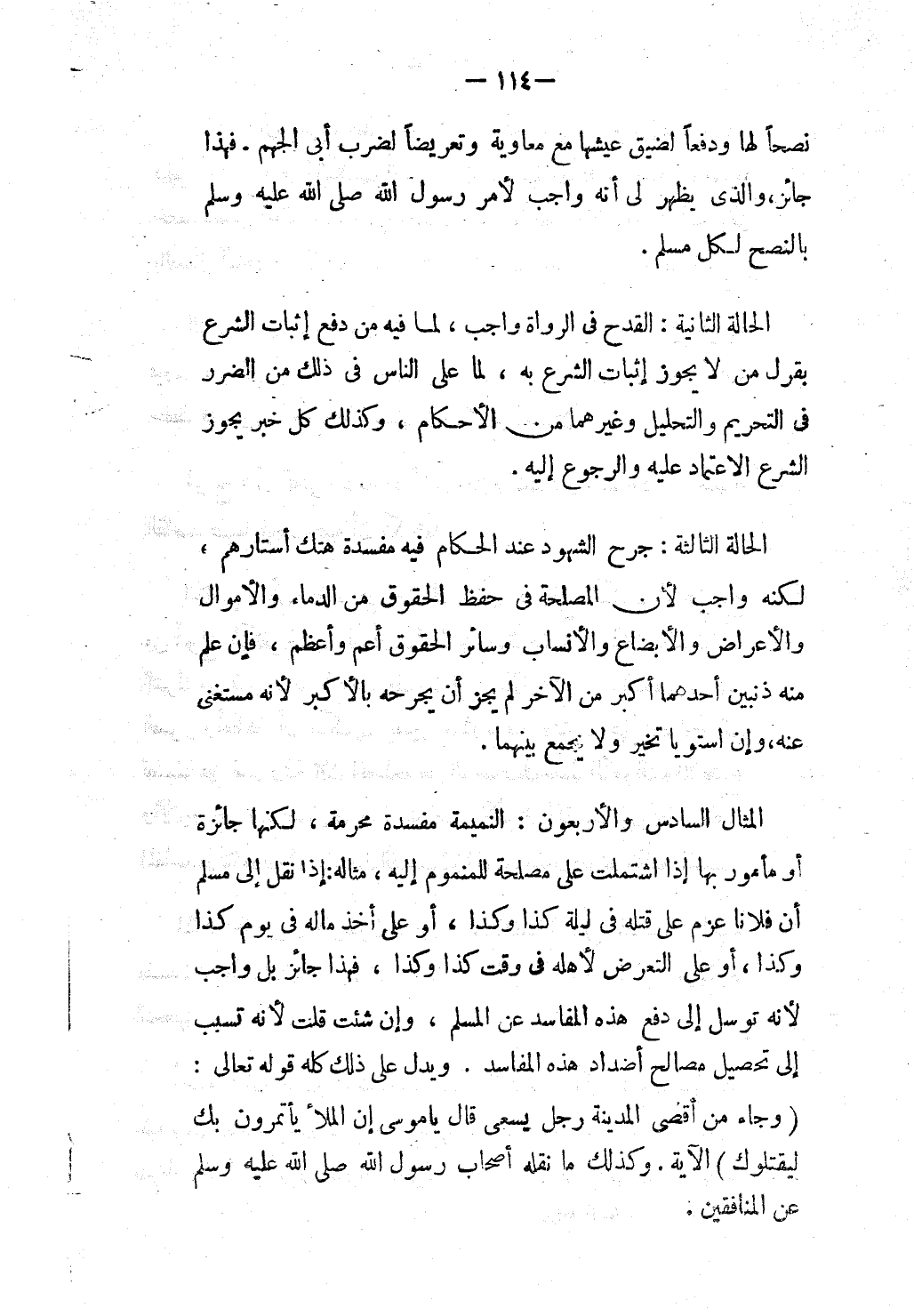 الْحَالَةُ الثَّانِيَةُ: الْقَدْحُ فِي الرُّوَاةِ وَاجِبٌ، لِمَا فِيهِ مِنْ دَفْعِ إثْبَاتِ الشَّرْعِ بِقَوْلِ مَنْ لَا يَجُوزُ إثْبَاتُ الشَّرْعِ بِهِ، لِمَا عَلَى النَّاسِ فِي ذَلِكَ مِنْ الضَّرَرِ فِي التَّحْرِيمِ وَالتَّحْلِيلِ وَغَيْرِهِمَا مِنْ الْأَحْكَامِ.