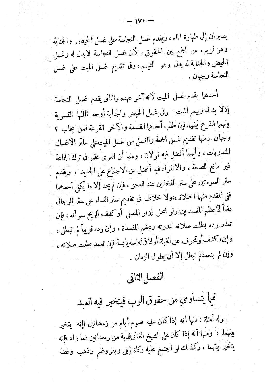 [الْفَصْلُ الثَّانِي فِيمَا يَتَسَاوَى مِنْ حُقُوقِ الرَّبِّ فَيَتَخَيَّرُ فِيهِ الْعَبْدُ]