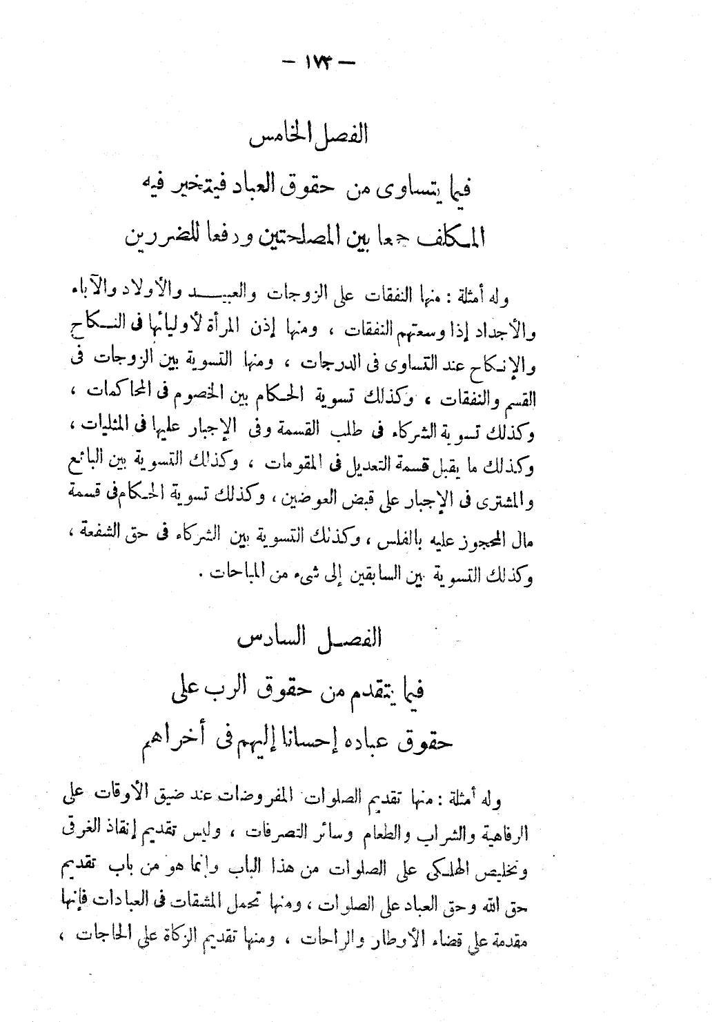 [الْفَصْلُ الْخَامِسُ فِيمَا يَتَسَاوَى مِنْ حُقُوقِ الْعِبَادِ فَيَتَخَيَّرُ فِيهِ الْمُكَلَّفُ]