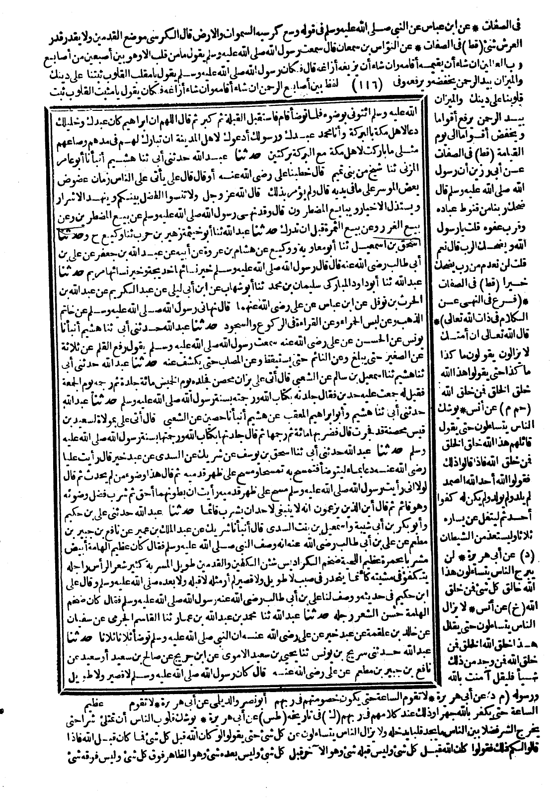 944- حَدَّثَنَا عَبْدُ اللهِ ، حَدَّثَنِي عَلِيُّ بْنُ حَكِيمٍ ، وَأَبُو بَكْرِ بْنُ أَبِي شَيْبَةَ ، وَإِسْمَاعِيلُ ابْنُ بِنْتِ السُّدِّيِّ قَالُوا : حَدَّثَنَا شَرِيكٌ ، عَنْ عَبْدِ الْمَلِكِ بْنِ عُمَيْرٍ ، عَنْ نَافِعِ بْنِ جُبَيْرِ بْنِ مُطْعِمٍ ، عَنْ عَلِيِّ بْنِ أَبِي طَالِبٍ ، أَنَّهُ وَصَفَ النَّبِيَّ صَلَّى اللَّهُ عَلَيْهِ وَسَلَّمَ ، فَقَالَ : كَانَ عَظِيمَ الْهَامَةِ ، أَبْيَضَ ، مُشْرَبًا حُمْرَةً ، عَظِيمَ اللِّحْيَةِ ، ضَخْمَ الْكَرَادِيسِ ، شَثْنَ الْكَفَّيْنِ وَالْقَدَمَيْنِ ، طَوِيلَ الْمَسْرُبَةِ ، كَثِيرَ شَعَرِ الرَّأْسِ رَجْلَهُ ، يَتَكَفَّأُ فِي مِشْيَتِهِ كَأَنَّمَا يَنْحَدِرُ فِي صَبَبٍ ، لاَ طَوِيلٌ ، وَلا قَصِيرٌ ، لَمْ أَرَ مِثْلَهُ قَبْلَهُ وَلاَ بَعْدَهُ صَلَّى اللَّهُ عَلَيْهِ وَسَلَّمَ وَقَالَ عَلِيُّ بْنُ حَكِيمٍ : فِي حَدِيثِهِ وَصَفَ لَنَا عَلِيُّ بْنُ أَبِي طَالِبٍ رَسُولَ اللهِ صَلَّى اللَّهُ عَلَيْهِ وَسَلَّمَ فَقَالَ : كَانَ ضَخْمَ الْهَامَةِ حَسَنَ الشَّعَرِ رَجِلَهُ.