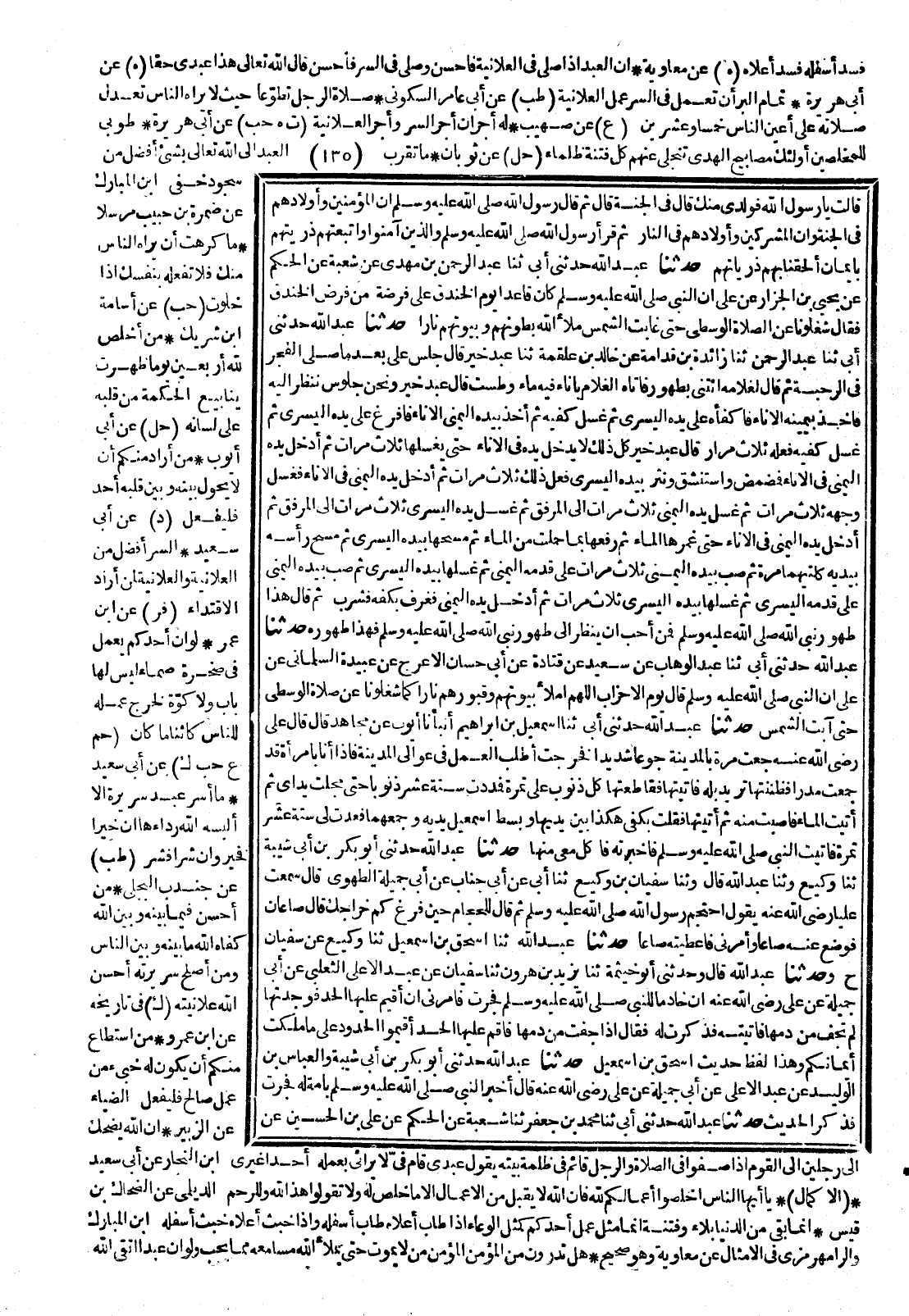 1133- حَدَّثَنَا عَبْدُ الرَّحْمَنِ ، حَدَّثَنَا زَائِدَةُ بْنُ قُدَامَةَ ، عَنْ خَالِدِ بْنِ عَلْقَمَةَ ، حَدَّثَنَا عَبْدُ خَيْرٍ قَالَ : جَلَسَ عَلِيٌّ بَعْدَمَا صَلَّى الْفَجْرَ فِي الرَّحَبَةِ ، ثُمَّ قَالَ لِغُلامِهِ : ائْتِنِي بِطَهُورٍ ، فَأَتَاهُ الْغُلامُ بِإِنَاءٍ فِيهِ مَاءٌ وَطَسْتٍ - قَالَ عَبْدُ خَيْرٍ : وَنَحْنُ جُلُوسٌ نَنْظُرُ إِلَيْهِ - فَأَخَذَ بِيَمِينِهِ الإِِنَاءَ فَأَكْفَأَهُ عَلَى يَدِهِ الْيُسْرَى ، ثُمَّ غَسَلَ كَفَّيْهِ ، ثُمَّ أَخَذَ بِيَدِهِ الْيُمْنَى الإِِنَاءَ ، فَأَفْرَغَ عَلَى يَدِهِ الْيُسْرَى ثُمَّ غَسَلَ كَفَّيْهِ ، فَعَلَهُ ثَلاثَ مِرَارٍ - قَالَ عَبْدُ خَيْرٍ : كُلُّ ذَلِكَ لاَ يُدْخِلُ يَدَهُ فِي الإِِنَاءِ حَتَّى يَغْسِلَهَا ثَلاثَ مَرَّاتٍ - ثُمَّ أَدْخَلَ يَدَهُ الْيُمْنَى فِي الإِِنَاءِ فَمَضْمَضَ ، وَاسْتَنْشَقَ وَنَثَرَ بِيَدِهِ الْيُسْرَى فَعَلَ ذَلِكَ ثَلاثَ مَرَّاتٍ ، ثُمَّ أَدْخَلَ يَدَهُ الْيُمْنَى فِي الإِِنَاءِ ، فَغَسَلَ وَجْهَهُ ثَلاثَ مَرَّاتٍ ، ثُمَّ غَسَلَ يَدَهُ الْيُمْنَى ثَلاثَ مَرَّاتٍ إِلَى الْمِرْفَقِ ، ثُمَّ غَسَلَ يَدَهُ الْيُسْرَى ثَلاثَ مَرَّاتٍ إِلَى الْمِرْفَقِ ، ثُمَّ أَدْخَلَ يَدَهُ الْيُمْنَى فِي الإِِنَاءِ حَتَّى غَمَرَهَا الْمَاءُ ، ثُمَّ رَفَعَهَا بِمَا حَمَلَتْ مِنَ المَاءِ ، ثُمَّ مَسَحَهَا بِيَدِهِ الْيُسْرَى ، ثُمَّ مَسَحَ رَأْسَهُ بِيَدَيْهِ كِلْتَيْهِمَا مَرَّةً ، ثُمَّ صَبَّ بِيَدِهِ الْيُمْنَى ثَلاثَ مَرَّاتٍ عَلَى قَدَمِهِ الْيُمْنَى ، ثُمَّ غَسَلَهَا بِيَدِهِ الْيُسْرَى ، ثُمَّ صَبَّ بِيَدِهِ الْيُمْنَى عَلَى قَدَمِهِ الْيُسْرَى ، ثُمَّ غَسَلَهَا بِيَدِهِ الْيُسْرَى ثَلاثَ مَرَّاتٍ ، ثُمَّ أَدْخَلَ يَدَهُ الْيُمْنَى فَغَرَفَ بِكَفِّهِ فَشَرِبَ ، ثُمَّ قَالَ : هَذَا طُهُورُ نَبِيِّ اللهِ صَلَّى اللَّهُ عَلَيْهِ وَسَلَّمَ ، فَمَنْ أَحَبَّ أَنْ يَنْظُرَ إِلَى طُهُورِ نَبِيِّ اللهِ صَلَّى اللَّهُ عَلَيْهِ وَسَلَّمَ ، فَهَذَا طُهُورُهُ.