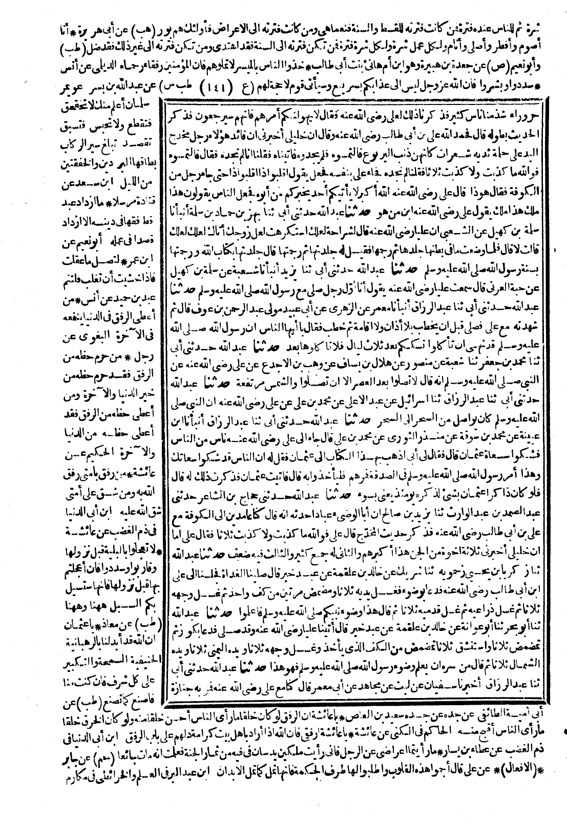 1197- حَدَّثَنَا عَبْدُ اللهِ ، حَدَّثَنِي حَجَّاجُ بْنُ الشَّاعِرِ ، حَدَّثَنِي عَبْدُ الصَّمَدِ بْنُ عَبْدِ الْوَارِثِ ، حَدَّثَنَا يَزِيدُ بْنُ أَبِي صَالِحٍ ، أَنَّ أَبَا الْوَضِيءِ عَبَّادًا حَدَّثَهُ ، أَنَّهُ قَالَ : كُنَّا عَامِدِينَ إِلَى الْكُوفَةِ مَعَ عَلِيِّ بْنِ أَبِي طَالِبٍ ، فَذَكَرَ حَدِيثَ الْمُخْدَجِ ، قَالَ عَلِيٌّ : فَوَاللَّهِ مَا كَذَبْتُ وَلا كُذِبْتُ ثَلاثًا ، فَقَالَ عَلِيٌّ : أَمَا إِنَّ خَلِيلِي أَخْبَرَنِي : ثَلاثَةَ إِخْوَةٍ مِنَ الجِنِّ ، هَذَا أَكْبَرُهُمْ ، وَالثَّانِي لَهُ جَمْعٌ كَثِيرٌ ، وَالثَّالِثُ فِيهِ ضَعْفٌ.
