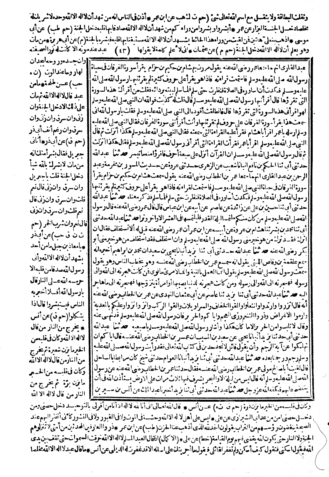 أَنَّهُمَا سَمِعَا عُمَرَ يَقُولُ : مَرَرْتُ بِهِشَامِ بْنِ حَكِيمِ بْنِ حِزَامٍ يَقْرَأُ سُورَةَ الْفُرْقَانِ فِي حَيَاةِ رَسُولِ اللهِ صَلَّى اللَّهُ عَلَيْهِ وَسَلَّمَ ، فَاسْتَمَعْتُ قِرَاءَتَهُ ، فَإِذَا هُوَ يَقْرَأُ عَلَى حُرُوفٍ كَثِيرَةٍ لَمْ يُقْرِئْنِيهَا رَسُولُ اللهِ صَلَّى اللَّهُ عَلَيْهِ وَسَلَّمَ ، فَكِدْتُ أَنْ أُسَاوِرَهُ فِي الصَّلاةِ ، فَنَظَرْتُ حَتَّى سَلَّمَ ، فَلَمَّا سَلَّمَ لَبَّبْتُهُ بِرِدَائِهِ ، فَقُلْتُ : مَنْ أَقْرَأَكَ هَذِهِ السُّورَةَ الَّتِي تَقْرَؤُهَا ، قَالَ : أَقْرَأَنِيهَا رَسُولُ اللهِ صَلَّى اللَّهُ عَلَيْهِ وَسَلَّمَ ، قَالَ : قُلْتُ لَهُ : كَذَبْتَ فَوَاللَّهِ إِنَّ النَّبِيَّ صَلَّى اللَّهُ عَلَيْهِ وَسَلَّمَ لَهُوَ أَقْرَأَنِي هَذِهِ السُّورَةَ الَّتِي تَقْرَؤُهَا ، قَالَ : فَانْطَلَقْتُ أَقُودُهُ إِلَى النَّبِيِّ صَلَّى اللَّهُ عَلَيْهِ وَسَلَّمَ ، فَقُلْتُ : يَا رَسُولَ اللهِ إِنِّي سَمِعْتُ هَذَا يَقْرَأُ سُورَةَ الْفُرْقَانِ عَلَى حُرُوفٍ لَمْ تُقْرِئْنِيهَا ، وَأَنْتَ أَقْرَأْتَنِي سُورَةَ الْفُرْقَانِ ، فَقَالَ النَّبِيُّ صَلَّى اللَّهُ عَلَيْهِ وَسَلَّمَ : أَرْسِلْهُ يَا عُمَرُ ، اقْرَأْ يَا هِشَامُ فَقَرَأَ عَلَيْهِ الْقِرَاءَةَ الَّتِي سَمِعْتُهُ ، فَقَالَ النَّبِيُّ صَلَّى اللَّهُ عَلَيْهِ وَسَلَّمَ : هَكَذَا أُنْزِلَتْ ، ثُمَّ قَالَ النَّبِيُّ عَلَيْهِ الصَّلاَةُ وَالسَّلاَمُ : اقْرَأْ يَا عُمَرُ فَقَرَأْتُ الْقِرَاءَةَ الَّتِي أَقْرَأَنِي رَسُولُ اللهِ صَلَّى اللَّهُ عَلَيْهِ وَسَلَّمَ ، فَقَالَ : هَكَذَا أُنْزِلَتْ ثُمَّ قَالَ رَسُولُ اللهِ صَلَّى اللَّهُ عَلَيْهِ وَسَلَّمَ : إِنَّ الْقُرْآنَ أُنْزِلَ عَلَى سَبْعَةِ أَحْرُفٍ ، فَاقْرَؤُوا مِنْهُ مَا تَيَسَّرَ.