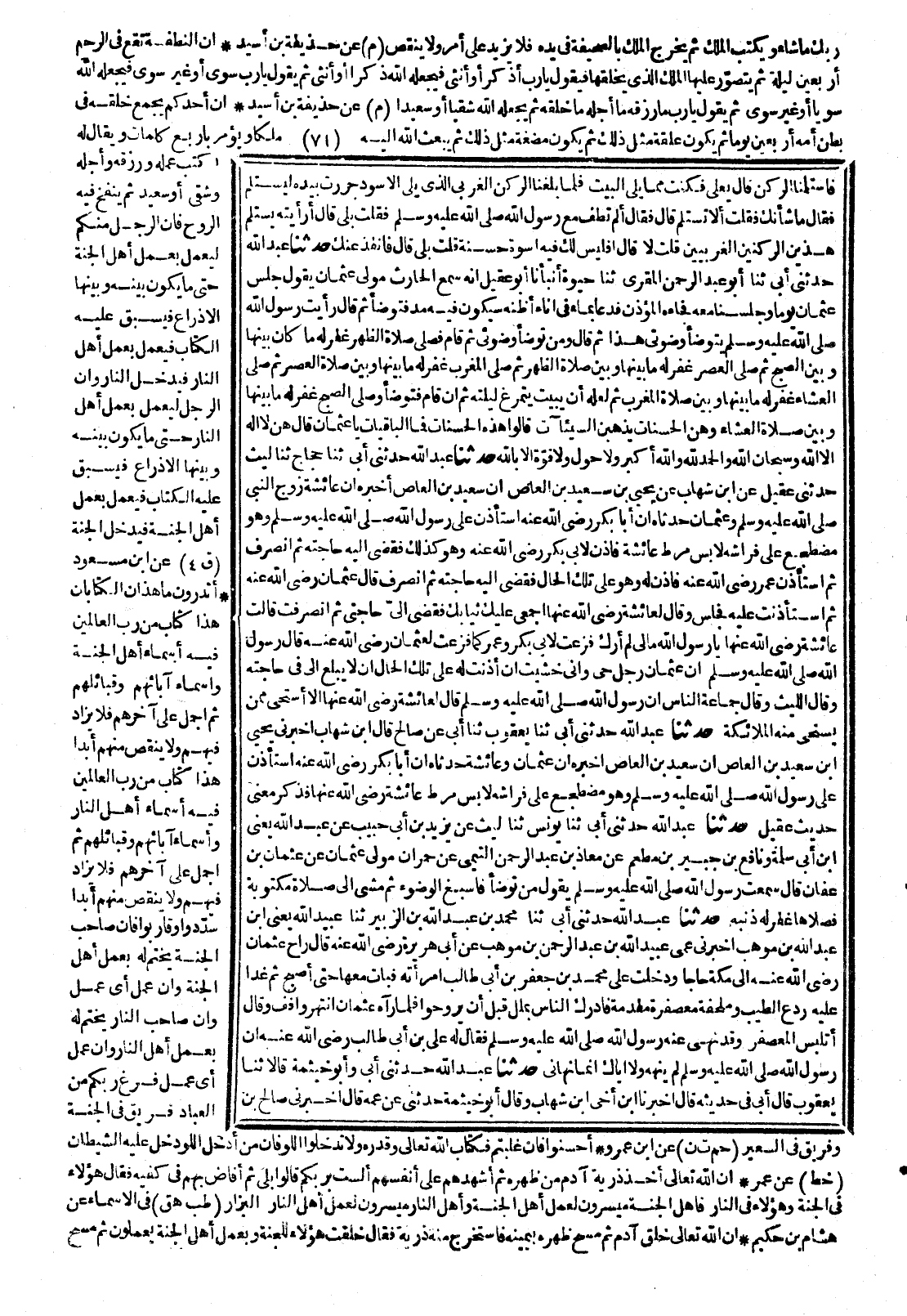 513- حَدَّثَنَا أَبُو عَبْدِ الرَّحْمَنِ الْمُقْرِئُ ، حَدَّثَنَا حَيْوَةُ ، أَخْبَرَنَا أَبُو عَقِيلٍ ، أَنَّهُ سَمِعَ الْحَارِثَ ، مَوْلَى عُثْمَانَ ، يَقُولُ : جَلَسَ عُثْمَانُ يَوْمًا ، وَجَلَسْنَا مَعَهُ فَجَاءَهُ الْمُؤَذِّنُ فَدَعَا بِمَاءٍ فِي إِنَاءٍ - أَظُنُّهُ سَيَكُونُ فِيهِ مُدٌّ - فَتَوَضَّأَ ثُمَّ قَالَ : رَأَيْتُ رَسُولَ اللهِ صَلَّى اللَّهُ عَلَيْهِ وَسَلَّمَ يَتَوَضَّأُ وُضُوئِي هَذَا ، ثُمَّ قَالَ : وَمَنْ تَوَضَّأَ وُضُوئِي ثُمَّ قَامَ فَصَلَّى صَلاةَ الظُّهْرِ غُفِرَ لَهُ مَا كَانَ بَيْنَهَا وَبَيْنَ الصُّبْحِ ، ثُمَّ صَلَّى الْعَصْرَ غُفِرَ لَهُ مَا بَيْنَهَا وَبَيْنَ صَلاةِ الظُّهْرِ ، ثُمَّ صَلَّى الْمَغْرِبَ غُفِرَ لَهُ مَا بَيْنَهَا وَبَيْنَ صَلاةِ الْعَصْرِ ، ثُمَّ صَلَّى الْعِشَاءَ غُفِرَ لَهُ مَا بَيْنَهَا وَبَيْنَ صَلاةِ الْمَغْرِبِ ، ثُمَّ لَعَلَّهُ أَنْ يَبِيتَ يَتَمَرَّغُ لَيْلَتَهُ ، ثُمَّ إِنْ قَامَ فَتَوَضَّأَ وَصَلَّى الصُّبْحَ غُفِرَ لَهُ مَا بَيْنَهَا وَبَيْنَ صَلاةِ الْعِشَاءِ ، وَهُنَّ الْحَسَنَاتُ يُذْهِبْنَ السَّيِّئَاتِ قَالُوا : هَذِهِ الْحَسَنَاتُ ، فَمَا الْبَاقِيَاتُ يَا عُثْمَانُ ؟ قَالَ : هُنَّ : لاَ إِلَهَ إِلاَّ اللَّهُ ، وَسُبْحَانَ اللهِ ، وَالْحَمْدُ لِلَّهِ ، وَاللَّهُ أَكْبَرُ ، وَلا حَوْلَ وَلا قُوَّةَ إِلاَّ بِاللَّهِ.