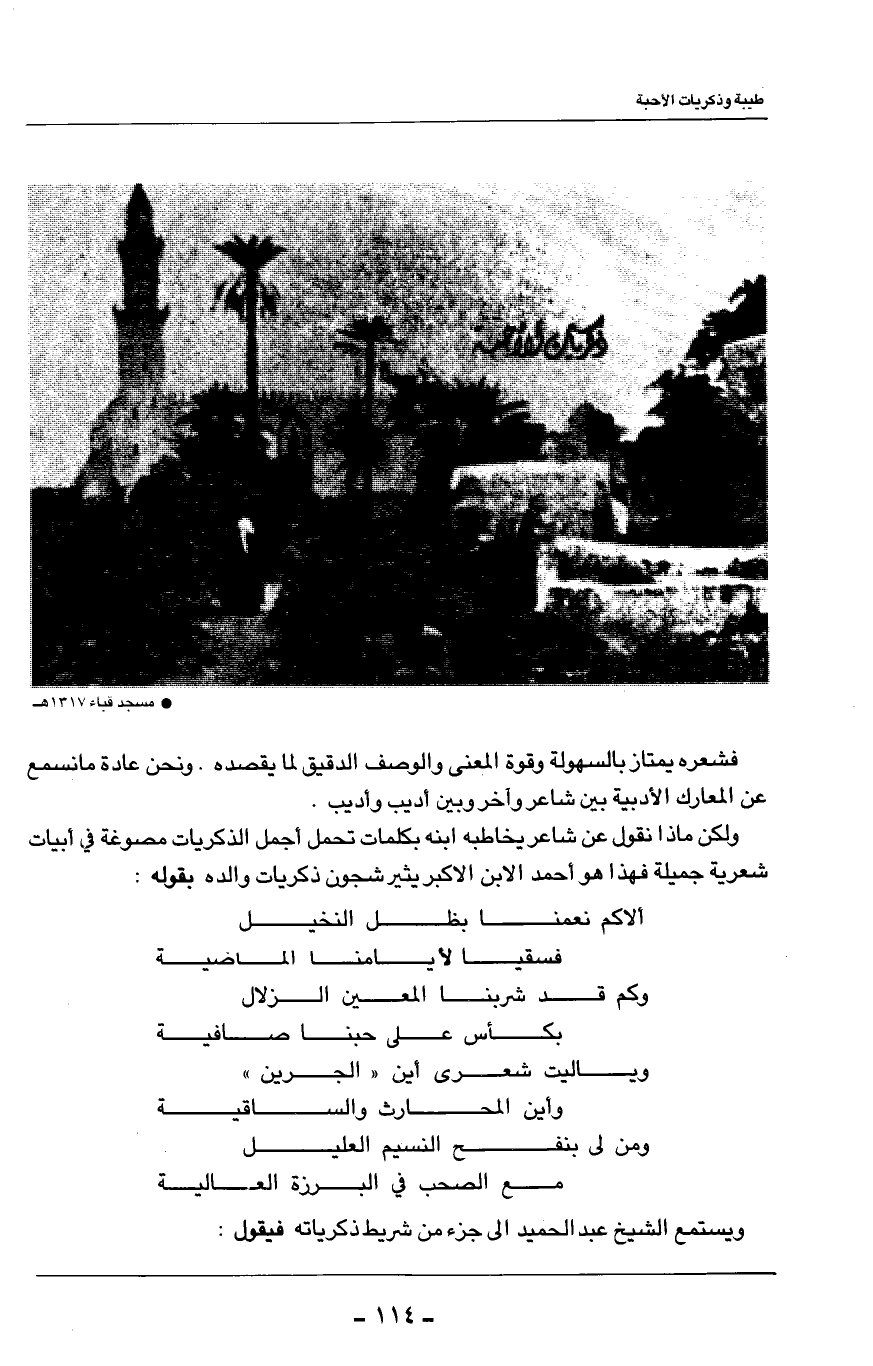 ولكن ماذ نقول عن شاعر يخاطبه ابنه بكلمات تحمل أجمل الذكريات مصوغة في أبيات شعرية جميلة فهذا هو أحمد الابن الاكبر يثير شجون ذكريات والده بقوله: