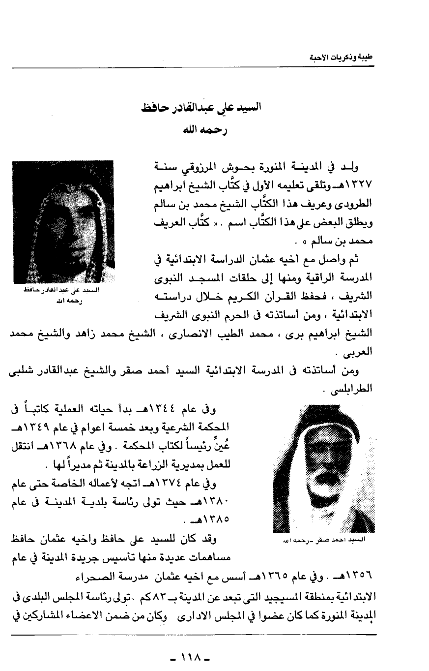 وقد كان للسيد علي حافظ واخيه عثمان حافظ مساهمات عديدة منها تأسيس جريدة المدينة في عام 1356هـ.