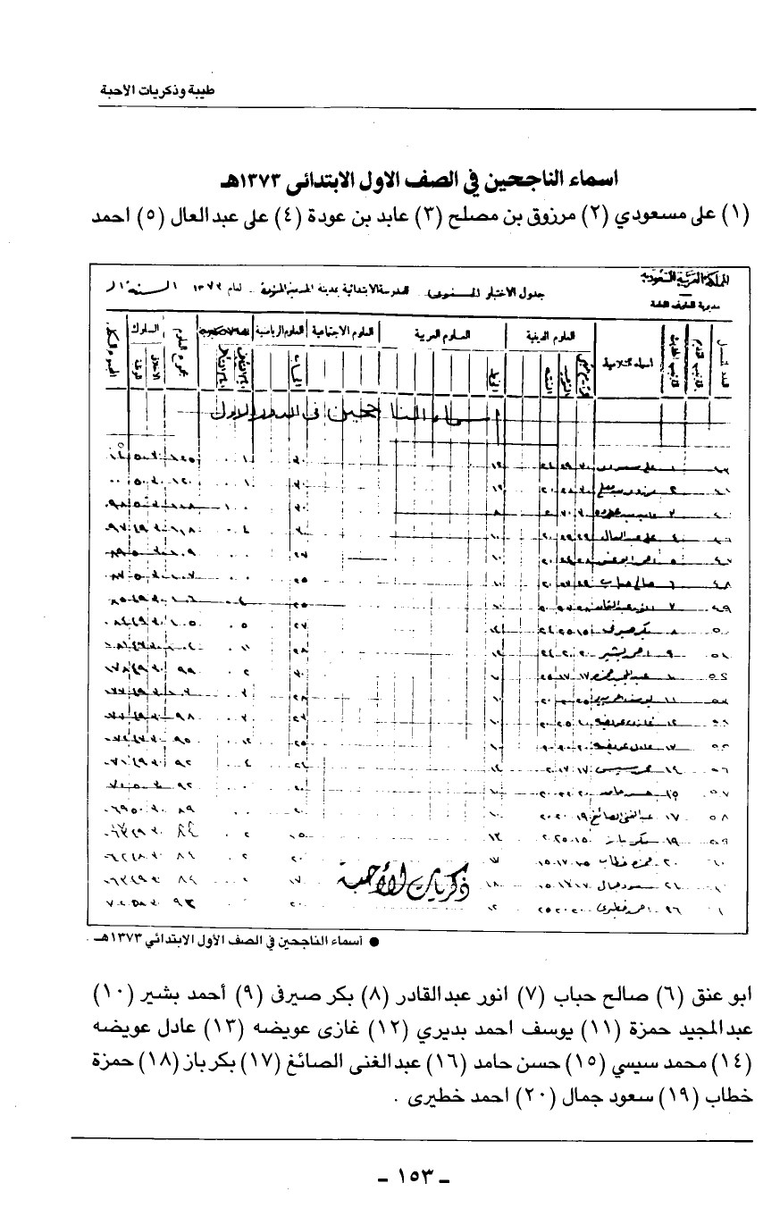 أسماء الناجحين في الصف الأول الابتدائي 1373هـ