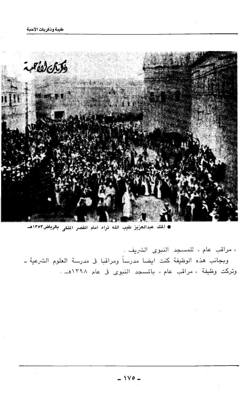 وبجانب هذه الوظيفة كنت ايضاً مدرساً ومراقباً في مدرسة العلوم الشرعية - وتركت وظيفة ((مراقب عام)) بالمسجد النبوي في عام 1398هـ.