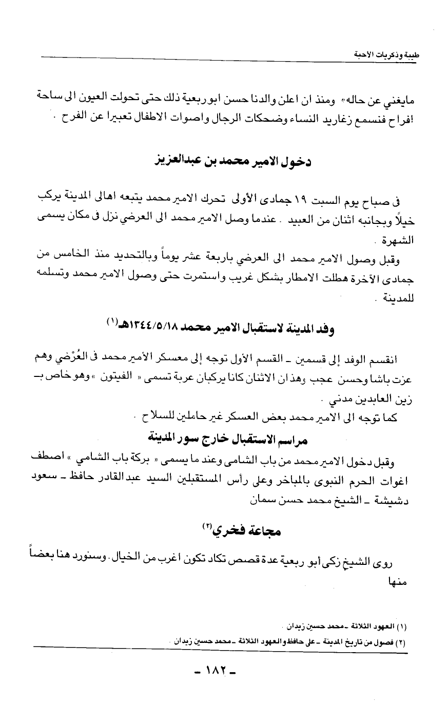(2) فصول من تاريخ المدينة - علي حافظ والعهود الثلاثة - محمد حسين زيدان.