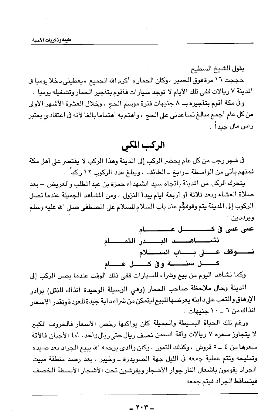 وفي مكة أقوم بتأجيره بـ8 جنيهات فترة موسم الحج، وخلال العشرة الأشهر الأولى من كل عام أجمع مبالغ تساعدني على الحج، وأهتم به اهتماما بالغا لأنه في اعتقادي يعتبر راس مال جيداً.