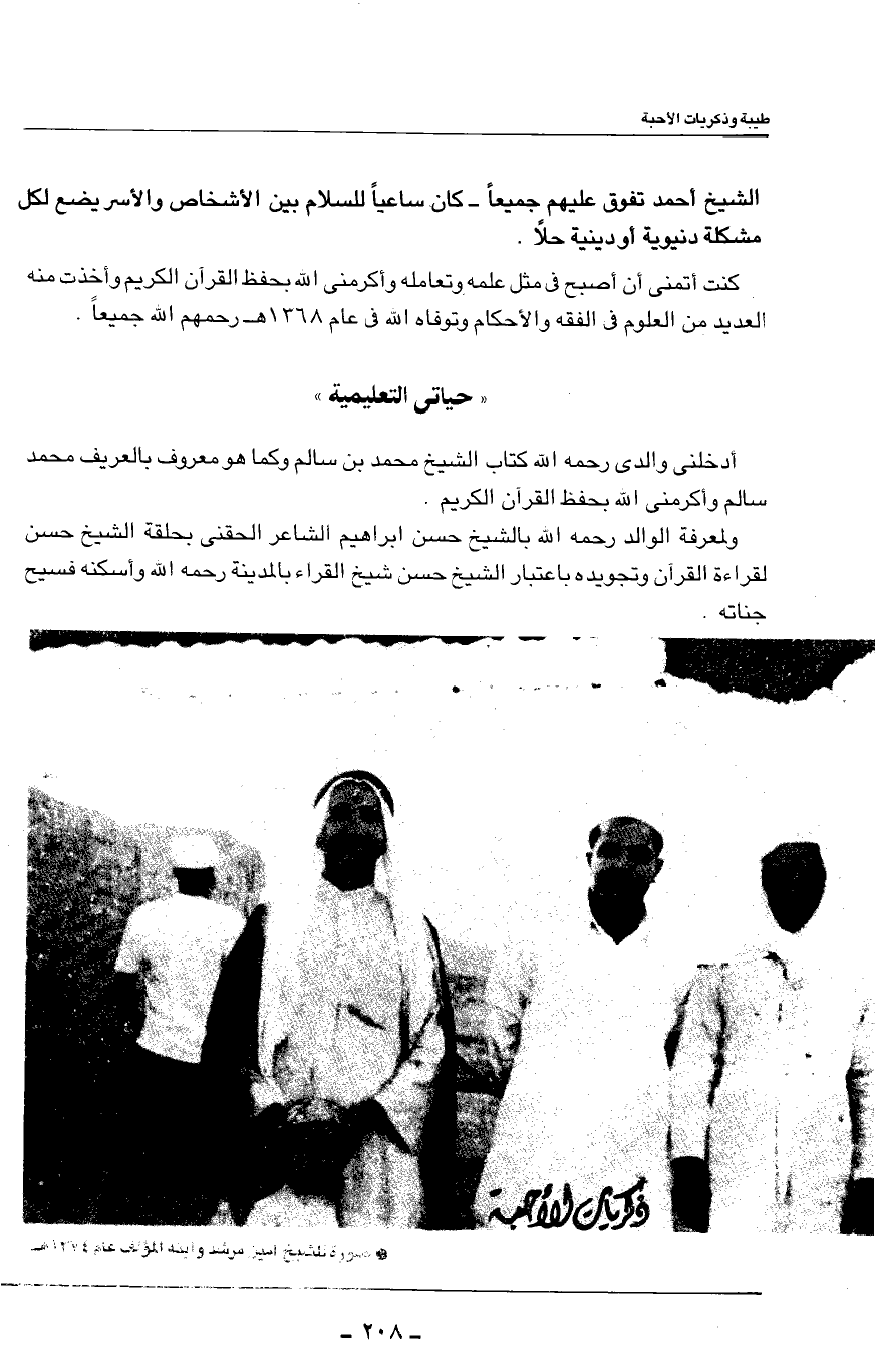 كنت أتمنى أن أصبح في مثل علمه وتعمله وأكرمني الله بحفظ القرآن الكريم وأخذت منه العديد من العولم في الفقه والأحكام وتوفاه الله في عام 1368هـ رحمهم الله جميعاً.