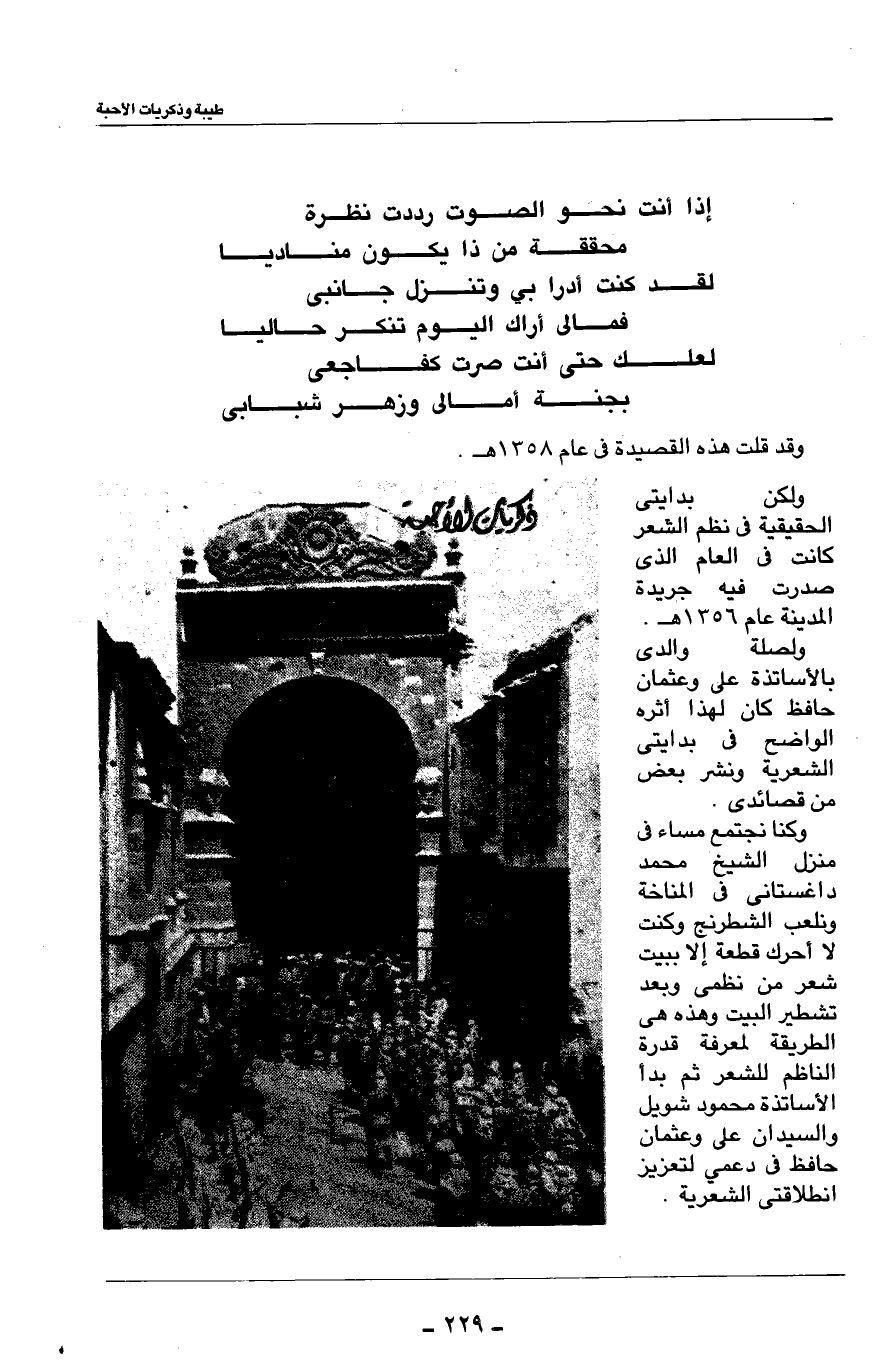 ولكن بدايتي الحقيقية في نظم الشعر كانت في العام الذي صدرت فيه جريدة المدينة عام 1356هـ.