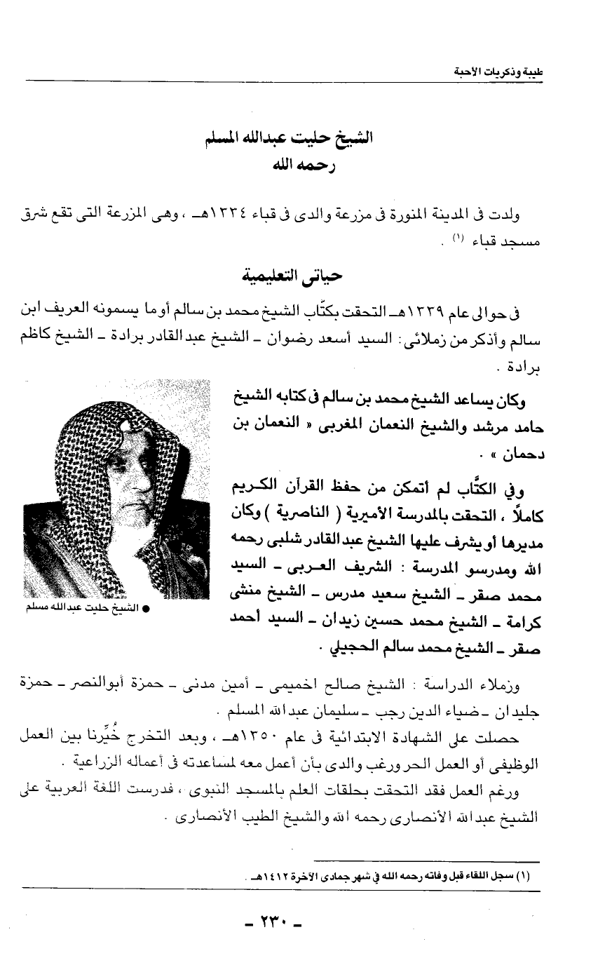 (1) سجل اللقاء قبل وفاته رحمه الله في شهر جمادى الآخرة 1412هـ.
