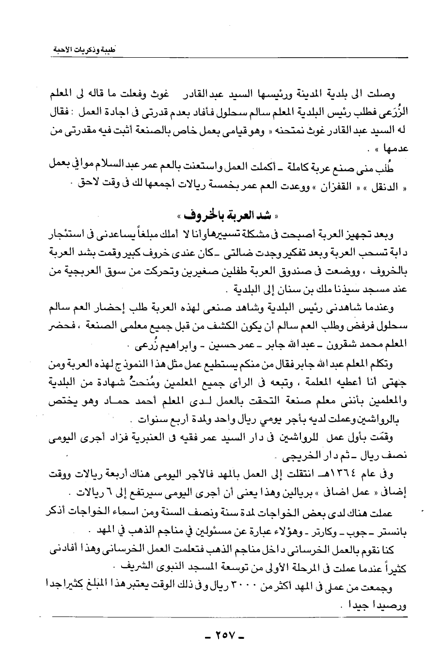 وقمت بأول عمل للرواشين في دار السيد عمر فقيه فى العنبرية فزاد أجرى اليومى نصف ريال - ثم دار الخريجى.