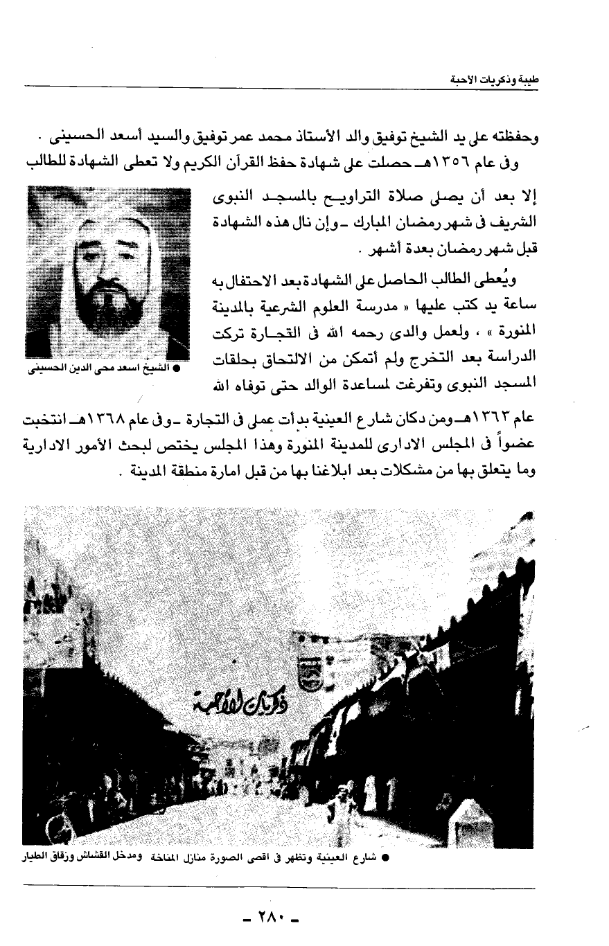 ويعطى الطالب الحاصل على الشهادة بعد الاحتفال به ساعة يد كتب عليها (مدرسة العلوم الشرعية بالمدينة المنورة)، ولعمل والدى رحمه الله في التجارة تركت الدراسة بعد التخرج ولم أتمكن من الالتحاق بحلقات المسجد النبوى وتفرغت لمساعدة والوالد حتى توفاه الله عام 1363هـ ومن دكان شارع العينية بدأت عملى فى التجارة - وفي عام 1368هـ انتخبت عضواً في المجلس الادارى للمدينة المنورة وهذا المجلس يختص لبحث الأمور الادارية وما يتعلق بها من مشكلات بعد ابلاغنا بها من قبل امارة منطقة المدينة.