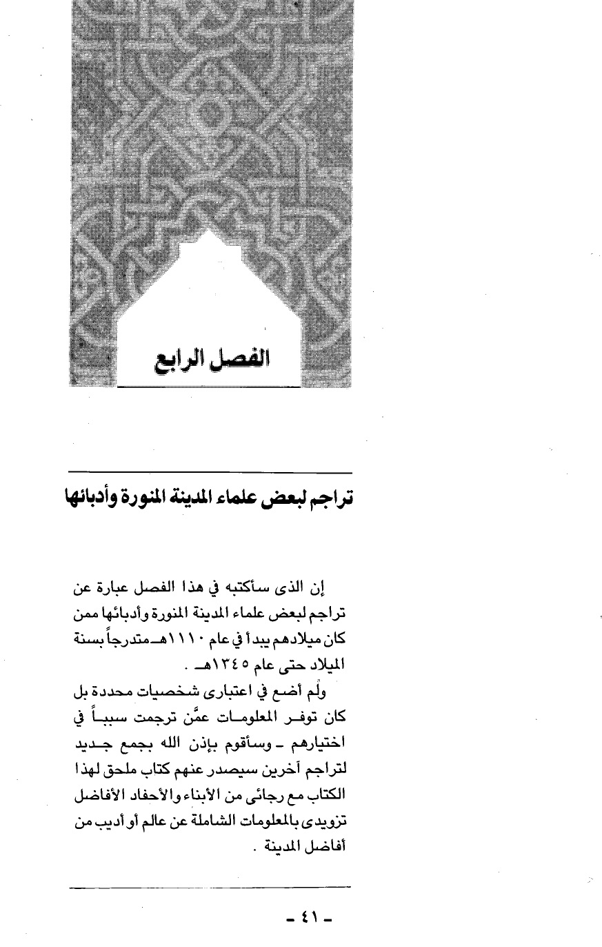 الفصل الرابع تراجم لبعض علماء المدينة المنورة وأدبائها