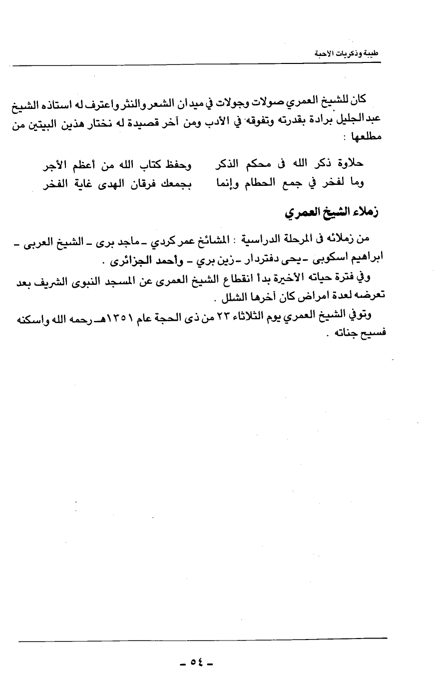 وتوفي الشيخ العمرى يوم الثلاثاء 23 من ذى الحجة عام 1351 هـ رحمه الله وأسكنه فسيح جنانه.