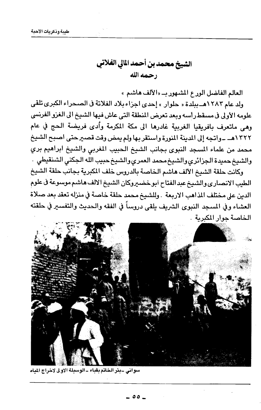 ولد عام 1283هـ ببلدة ((حلوار)) إحدى اجزاء بلاد الفلاتة في الصحراء الكبرى تلقى علومه الأولى في مسقط رأسه وبعد تعرض المنطقة التي عاش الشيخ إلى الغزو الفرنسي وهي ما تعرف بافريقيا الغربية غادر إلى مكة المكرمة وأدى فريضة الحج في عام 1322 هـ - واتجه إلى المدينة المنورة واستقر بها ولم يمض وقت قصير حتى اصبح الشيخ محمد من علماء المسجد النبوي بجانب الشيخ الحبيب المغربي إبراهيم بري والشيخ حميد الجزائري والشيخ محمد العمري والشيخ حبيب الله الجكني الشنقيطي.