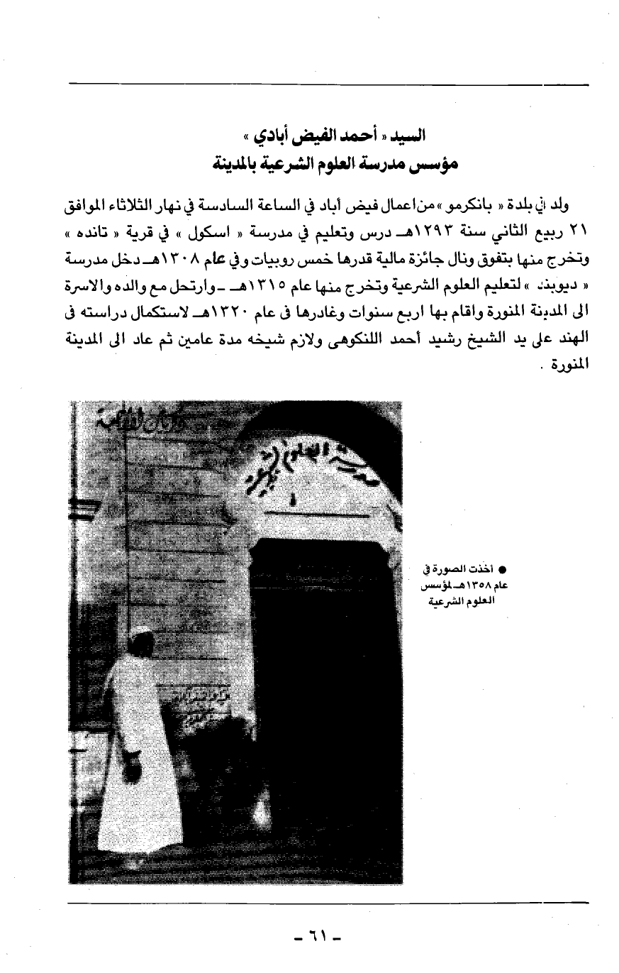 السيد ((أحمد الفيض أبادي)) مؤسس مدرسة العلوم الشرعية بالمدينة