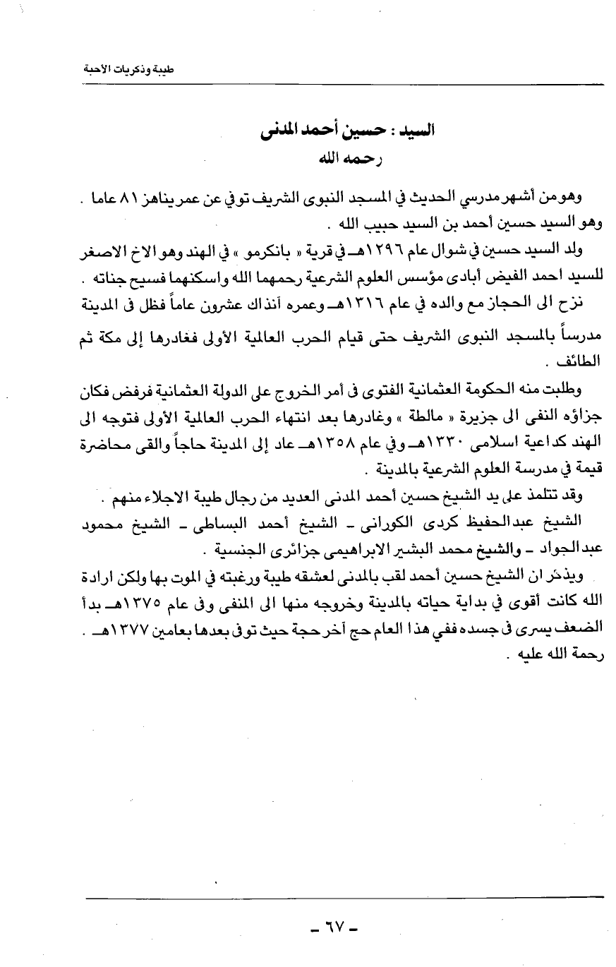 وهو السيد حسين أحمد بن السيد حبيب الله.