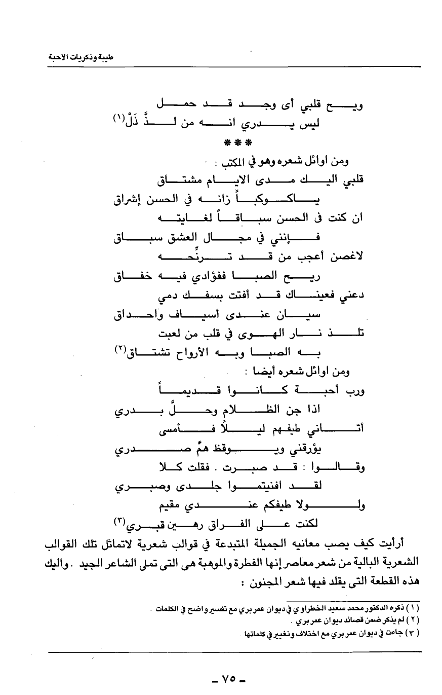 (1) ذكره الدكتور محمد العيد الخطرواي في ديوان عمر بري مع تغيير واضح في الكلمات