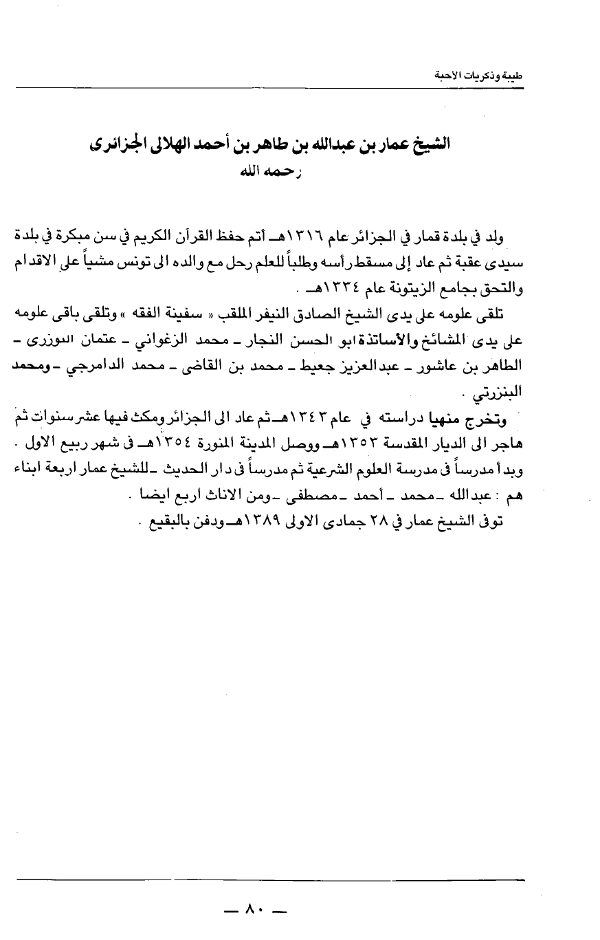 الشيخ عمار بن عبد الله بن طاهر بن أحمد الهلالي الجزائري