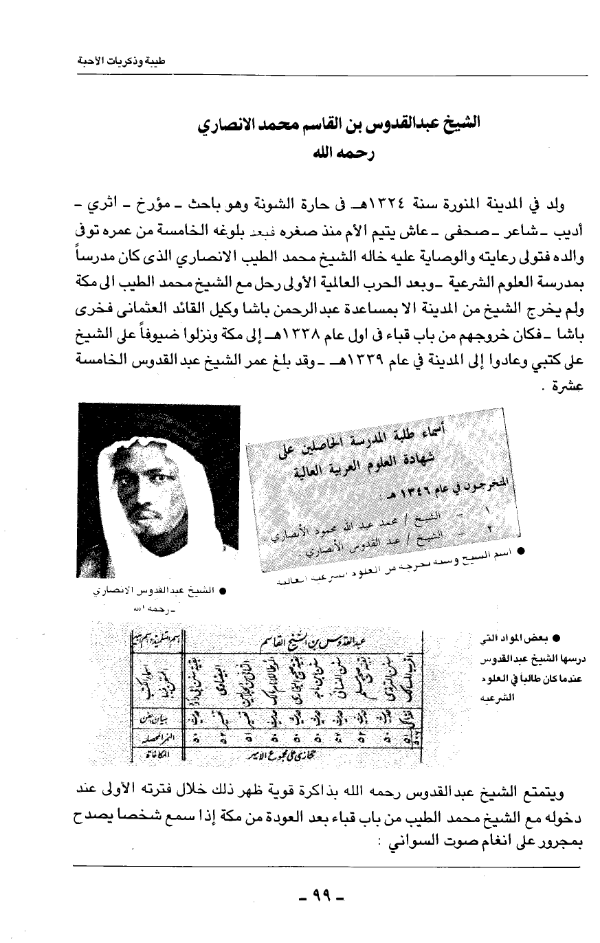 * بعض المواد التي درسها الشيخ عبد القدوس عندما كان طالباً في العلوم الشرعية.