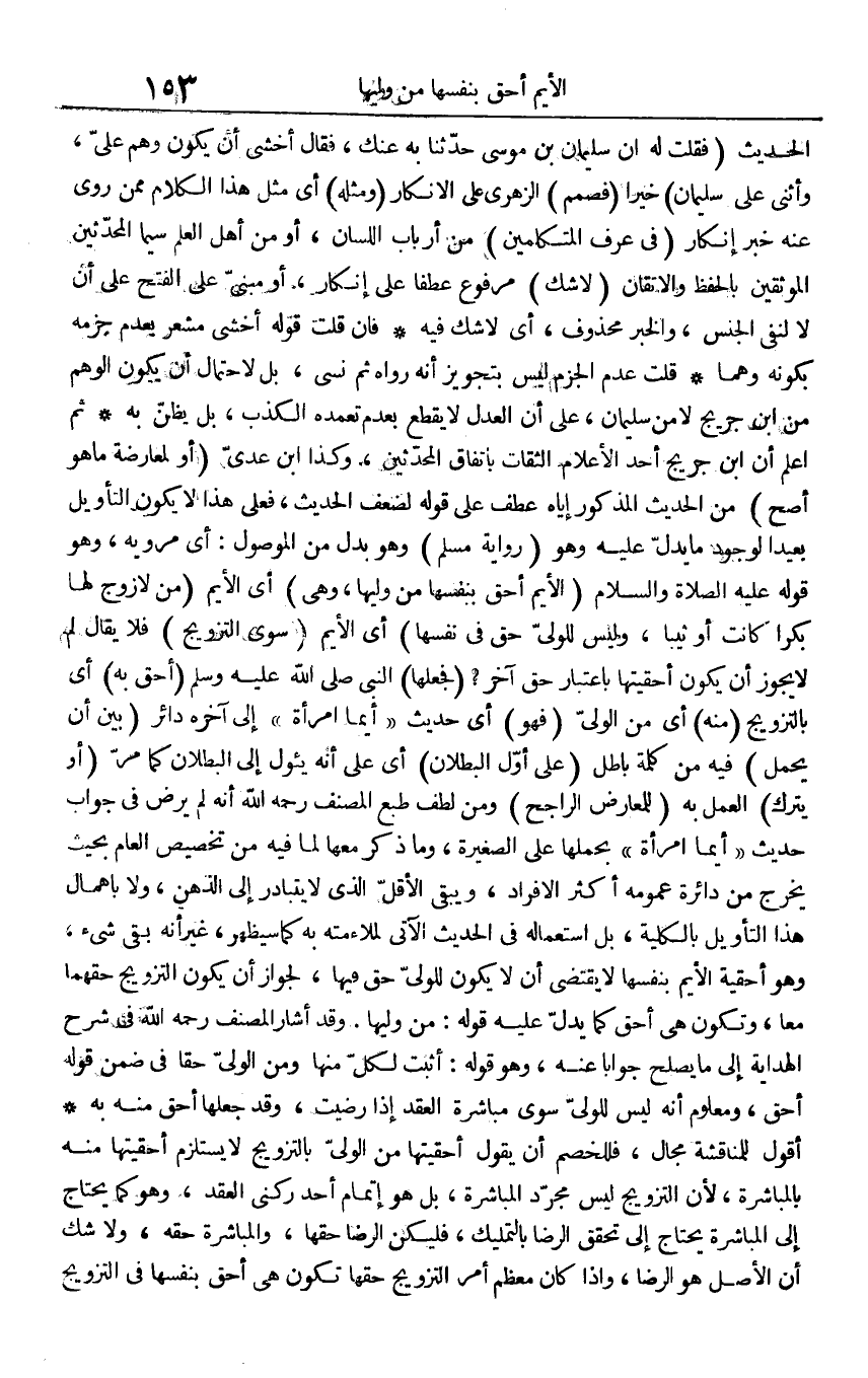 الحَدِيث (فَقلت لَهُ أَن سُلَيْمَان بن مُوسَى حَدثنَا بِهِ عَنْك، فَقَالَ أخْشَى أَن يكون وهم عَليّ، وَأثْنى على سُلَيْمَان) خيرا (فصمم) الزُّهْرِيّ على الْإِنْكَار (وَمثله) أَي مثل هَذَا الْكَلَام مِمَّن روى عَنهُ خبر إِنْكَار (فِي عرف الْمُتَكَلِّمين) من أَرْبَاب اللِّسَان، أَو من أهل الْعلم سِيمَا الْمُحدثين الموثقين بِالْحِفْظِ والإتقان (لَا شكّ) مَرْفُوع عطفا على إِنْكَار، أَو مَبْنِيّ على الْفَتْح على أَن لَا لنفي الْجِنْس، وَالْخَبَر مَحْذُوف، أَي لَا شكّ فِيهِ فَإِن قلت قَوْله أخْشَى مشْعر بِعَدَمِ جزمه بِكَوْنِهِ وهما قلت عدم الْجَزْم لَيْسَ بتجويز أَنه رَوَاهُ ثمَّ نسى، بل لاحْتِمَال أَن يكون الْوَهم من ابْن جريج لَا من سُلَيْمَان، على أَن الْعدْل لَا يقطع بِعَدَمِ تَعَمّده الْكَذِب، بل يظنّ بِهِ ثمَّ اعْلَم أَن ابْن جريج أحد الْأَعْلَام الثِّقَات بِاتِّفَاق الْمُحدثين، وَكَذَا ابْن عدي (أَو لمعارضة مَا هُوَ أصح) من الحَدِيث الْمَذْكُور إِيَّاه عطف على قَوْله لضعف الحَدِيث، فعلى هَذَا لَا يكون التَّأْوِيل بَعيدا لوُجُود مَا يدل عَلَيْهِ وَهُوَ (رِوَايَة مُسلم) وَهُوَ بدل من الْمَوْصُول: أَي مرويه، وَهُوَ قَوْله صلى الله عَلَيْهِ وَسلم (الأيم أَحَق بِنَفسِهَا من وَليهَا، وَهِي) أَي الأيم (من لَا زوج لَهَا بكرا كَانَت أَو ثَيِّبًا، وَلَيْسَ للْوَلِيّ حق فِي نَفسهَا) أَي الأيم (سوى التَّزْوِيج) فَلَا يُقَال لم لَا يجوز أَن يكون أحقيتها بِاعْتِبَار حق آخر؟ (فَجَعلهَا) النَّبِي صلى الله عَلَيْهِ وَسلم (أَحَق بِهِ) أَي بِالتَّزْوِيجِ (مِنْهُ) أَي من الْوَلِيّ (فَهُوَ) أَي حَدِيث " أَيّمَا امْرَأَة " إِلَى آخِره دائر (بَين أَن يحمل) فِيهِ من كلمة بَاطِل (على أول الْبطلَان) أَي على أَنه يَئُول إِلَى الْبطلَان كَمَا مر (أَو يتْرك) الْعَمَل بِهِ (للمعارض الرَّاجِح) وَمن لطف طبع المُصَنّف رَحمَه الله أَنه لم يرض فِي جَوَاب حَدِيث " أَيّمَا امْرَأَة " بحملها على الصَّغِيرَة، وَمَا ذكر مَعهَا لما فِيهِ من تَخْصِيص الْعَام بِحَيْثُ يخرج من دَائِرَة عُمُومه أَكثر الْأَفْرَاد، وَيبقى الْأَقَل الَّذِي لَا يتَبَادَر إِلَى الذِّهْن، وَلَا بإهمال هَذَا التَّأْوِيل بِالْكُلِّيَّةِ، بل اسْتِعْمَاله فِي الحَدِيث الْآتِي لملاءمته بِهِ كَمَا سَيظْهر، غير أَنه بَقِي شَيْء، وَهُوَ أحقية الأيم بِنَفسِهَا لَا يَقْتَضِي أَن لَا يكون للْوَلِيّ حق فِيهَا، لجَوَاز أَن يكون التَّزْوِيج حَقّهمَا مَعًا، وَتَكون هِيَ أَحَق كَمَا يدل عَلَيْهِ قَوْله: من وَليهَا. وَقد أَشَارَ المُصَنّف رَحمَه الله فِي شرح الْهِدَايَة إِلَى مَا يصلح جَوَابا عَنهُ، وَهُوَ قَوْله: أثبت لكل مِنْهَا وَمن الْوَلِيّ حَقًا فِي ضمن قَوْله أَحَق، وَمَعْلُوم أَنه لَيْسَ للْوَلِيّ سوى مُبَاشرَة العقد إِذا رضيت، وَقد جعلهَا أَحَق مِنْهُ بِهِ أَقُول للمناقشة مجَال، فللخصم أَن يَقُول أحقيتها من الْوَلِيّ بِالتَّزْوِيجِ لَا يسْتَلْزم أحقيتها مِنْهُ بِالْمُبَاشرَةِ، لِأَن التَّزْوِيج لَيْسَ مُجَرّد الْمُبَاشرَة، بل هُوَ إتْمَام أحد ركني العقد، وَهُوَ كَمَا يحْتَاج إِلَى الْمُبَاشرَة يحْتَاج إِلَى تحقق الرِّضَا بالتمليك، فَلْيَكُن الرِّضَا حَقّهَا، والمباشرة حَقه، وَلَا شكّ أَن الأَصْل هُوَ الرِّضَا، وَإِذا كَانَ مُعظم أَمر التَّزْوِيج حَقّهَا تكون هِيَ أَحَق بِنَفسِهَا فِي التَّزْوِيج