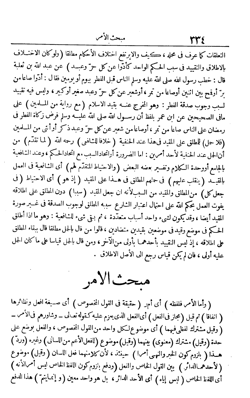 (وَأما الْأَمر فلفظه) أَي أَمر (حَقِيقَة فِي القَوْل الْمَخْصُوص) أَي صِيغَة افْعَل ونظائرها (اتِّفَاقًا) ثمَّ قيل (مجَاز فِي الْفِعْل) أَي الْفِعْل الَّذِي يعزم عَلَيْهِ كَقَوْلِه تَعَالَى - وشاورهم فِي الْأَمر - (وَقيل مُشْتَرك لَفْظِي فيهمَا) أَي مَوْضُوع لكل وَاحِد من القَوْل الْمَخْصُوص، وَالْفِعْل بِوَضْع على حِدة (وَقيل) مُشْتَرك (معنوي) بَينهمَا (وَقيل) مَوْضُوع (للْفِعْل الْأَعَمّ من اللساني) وَغَيره (ورد) هَذَا (بِلُزُوم كَون الْخَبَر وَالنَّهْي أمرا) حِينَئِذٍ، لِأَن كلا مِنْهُمَا فعل اللِّسَان (وَقيل) مَوْضُوع (لأَحَدهمَا الدائر) بَين القَوْل الْخَاص وَالْفِعْل (وَدفع بِلُزُوم كَون اللَّفْظ الْخَاص لَيْسَ أمرا لِأَنَّهُ) أَي اللَّفْظ الْخَاص (لَيْسَ إِيَّاه) أَي الْأَحَد الدائر، بل هُوَ وَاحِد معِين (وَإِنَّمَا يتم) هَذَا الدّفع