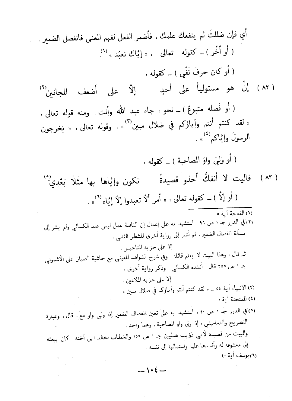 (أو فصله متبوع) -نحو: جاء عبد الله وأنت ومنه قوله تعالى: "لقد كنتم أنتم وآباؤكم في ضلال مبين"، وقوله تعالى: "يخرجون الرسول وإياكم".
