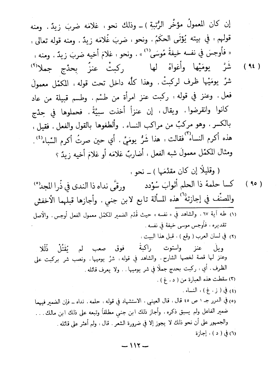 إن كان المعمول مؤخر الرتبة) - وذلك نحو: غلامه ضرب زيد، ومنه قولهم: في بيته يؤتى الحكم، ونحو: ضرب غلامه زيد، ومنه قوله تعالى: "فأوجس في نفسه خيفة موسى"، ونحو: غلام أخيه ضرب زيد، ومنه: