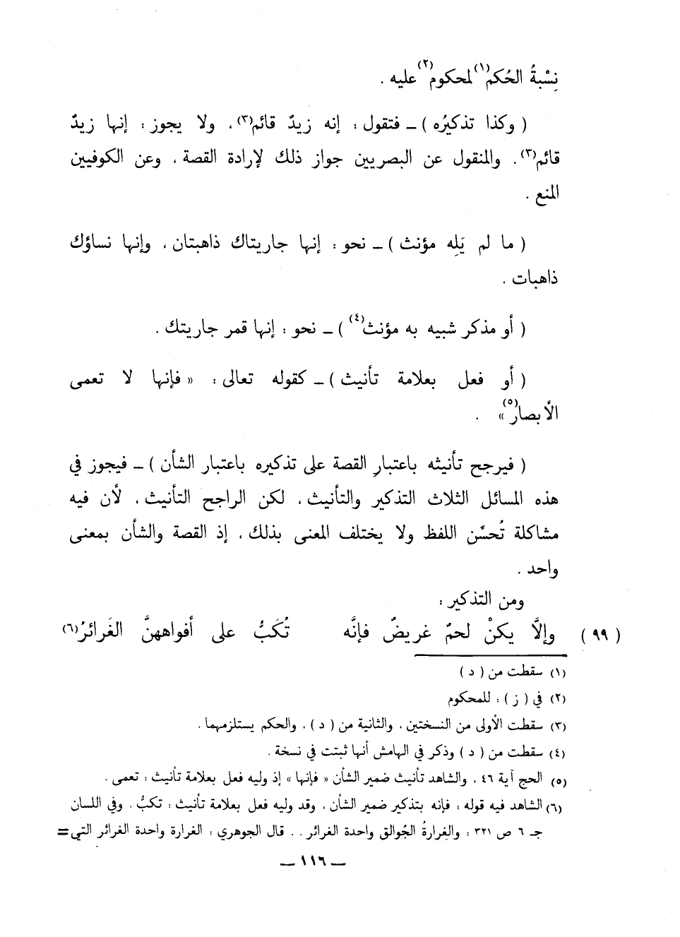 (99) وإلا يكن لحكم غريض فإنه ... تكب على أفواههن الغرائر