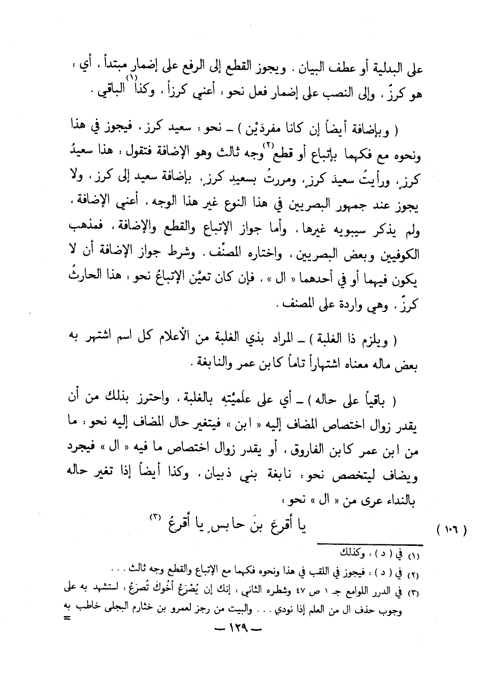 (ويلزم ذا الغلبة) -المراد بذي الغلبة من الأعلام كل اسم اشتهر به بعض ماله معناه اشتهارًا تامًا كابن عمر والنابغة.