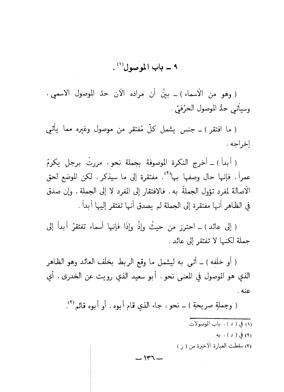 (إلى عائد) -احترز من حيث وإذ وإذا فإنها أسماء تفتقر أبدًا إلى جملة لكنها لا تفتقر إلى عائد.