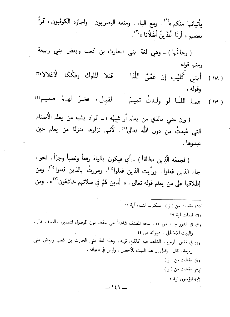 يأتيانها منكم" ومع الياء، ومنعه البصريون، وأجازه الكوفيون: قرأ بعضهم: "أرنا اللذين أضلانا".