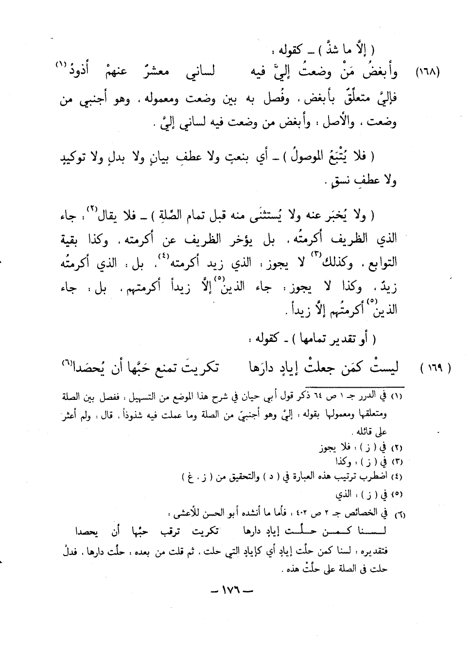 (ولا يخبر عنه ولا يستثنى منه قبل تمام الصلة) - فلا يقال: جاء الذي الظريف أكرمتُه، بل يؤخر الظريف عن أكرمته، وكذا بقية التوابع، وكذلك لا يجوز: الذي زيد أكرمته، بل: الذي أكرمته زيد، وكذا لا يجوز: جاء الذين إلا زيدًا أكرمتهم، بل: جاء الذين أكرمتهم إلا زيدًا.