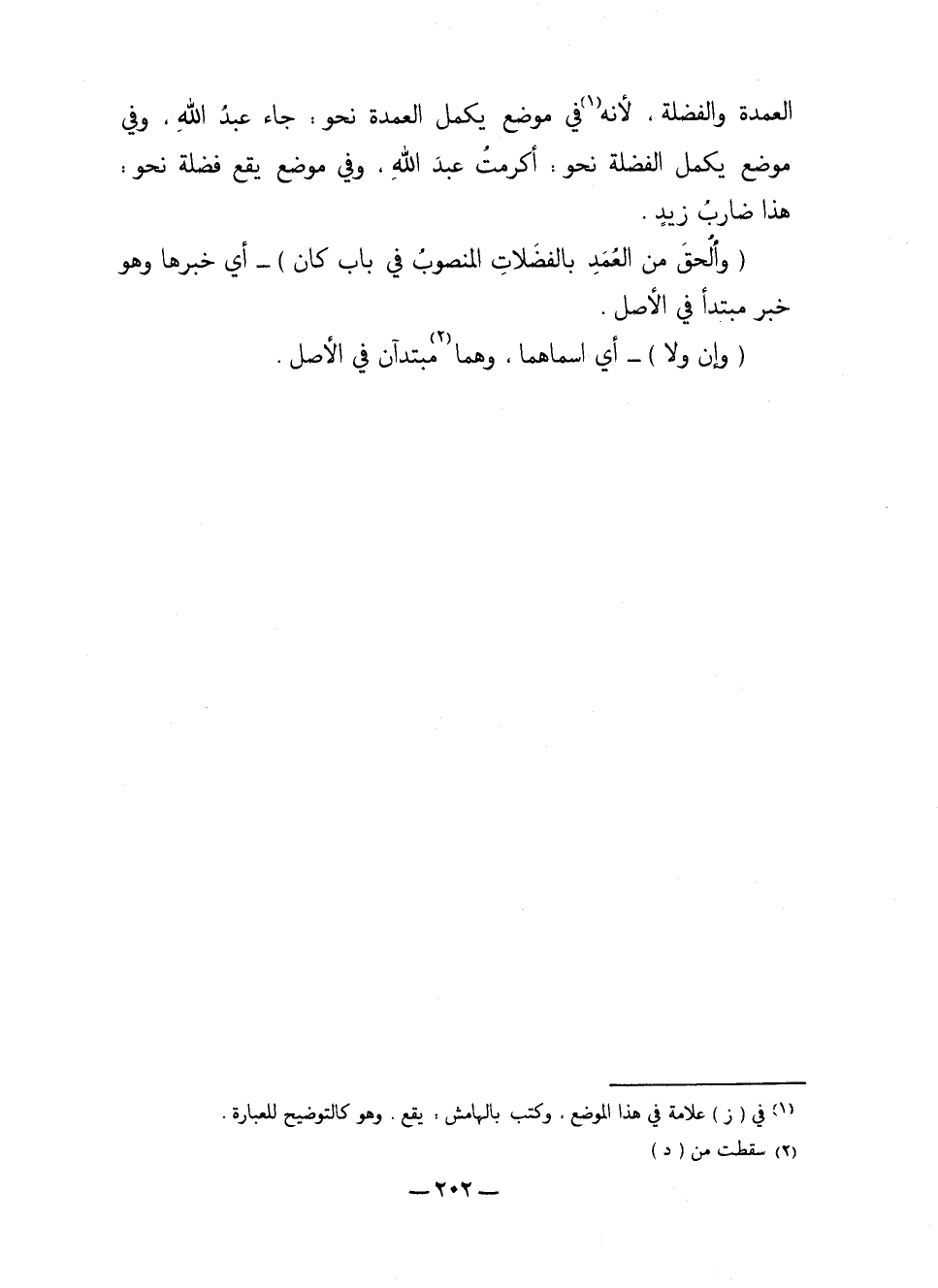 (وألحق من العُمَدِ بالفضلات المنصوبُ في باب كان) - أي خبرها وهو خبر مبتدأ في الأصل.